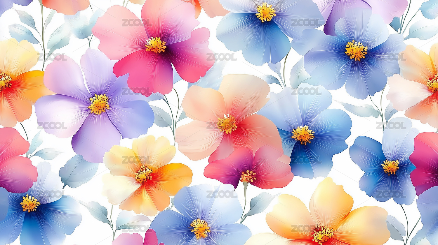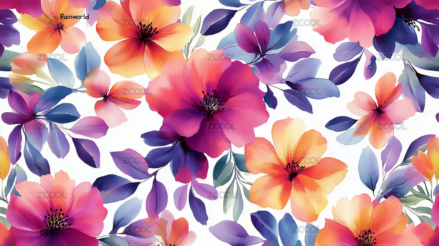 3D潮流水彩花卉设计图案