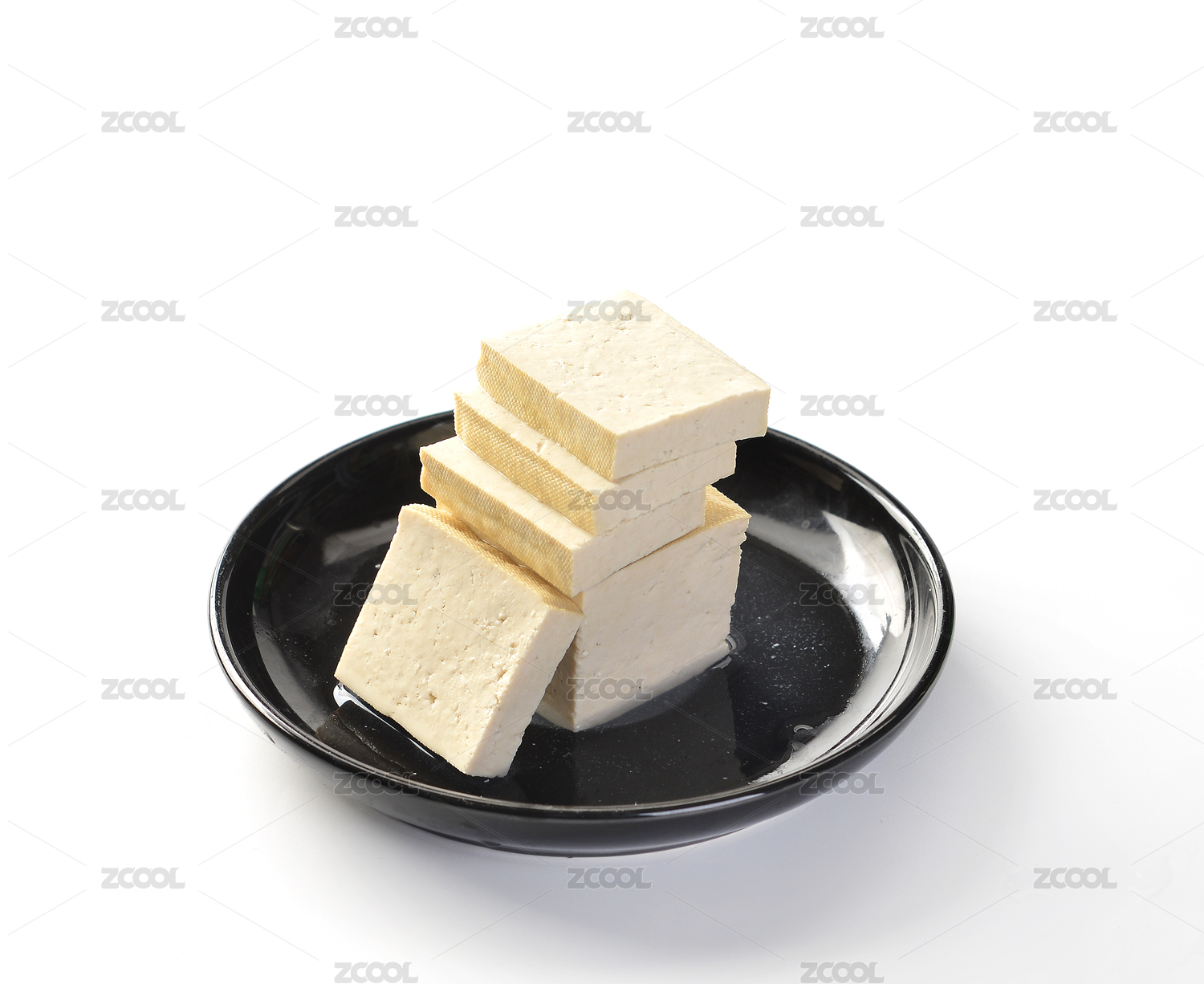 白色背景上摆放的新鲜豆腐