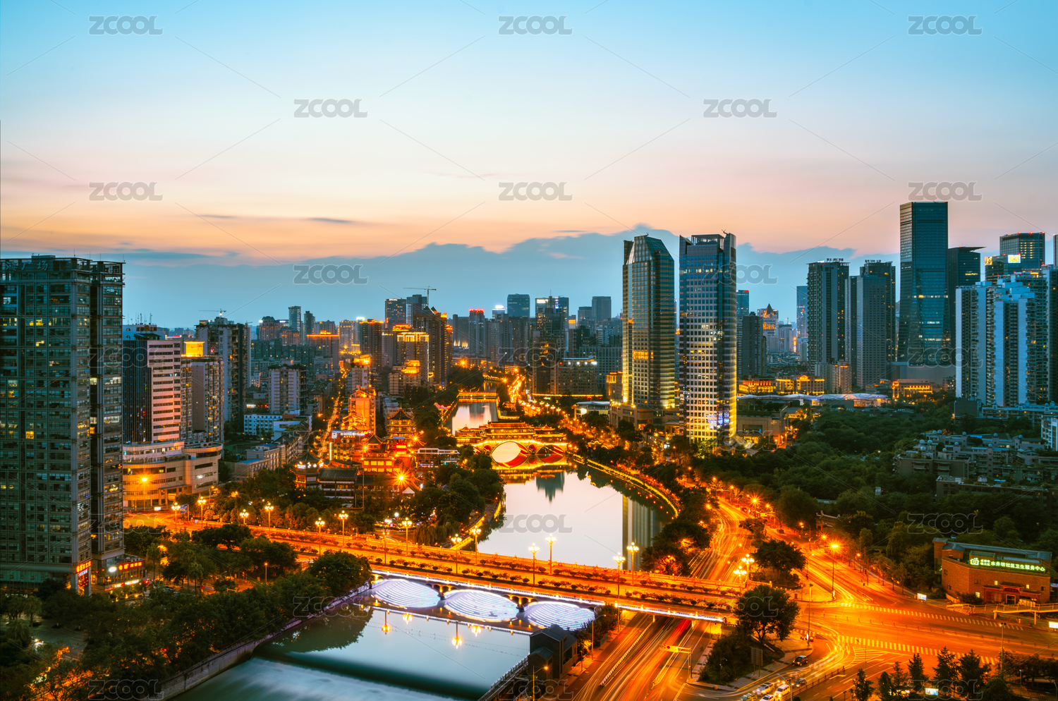 成都望江楼锦江区和成都电视塔夜景城市风光