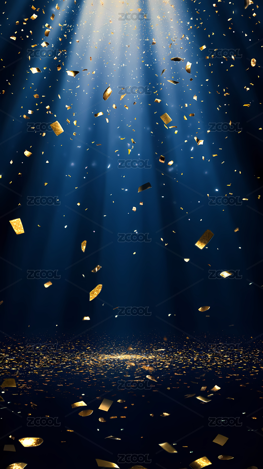 金色纸屑洒落舞台灯光璀璨