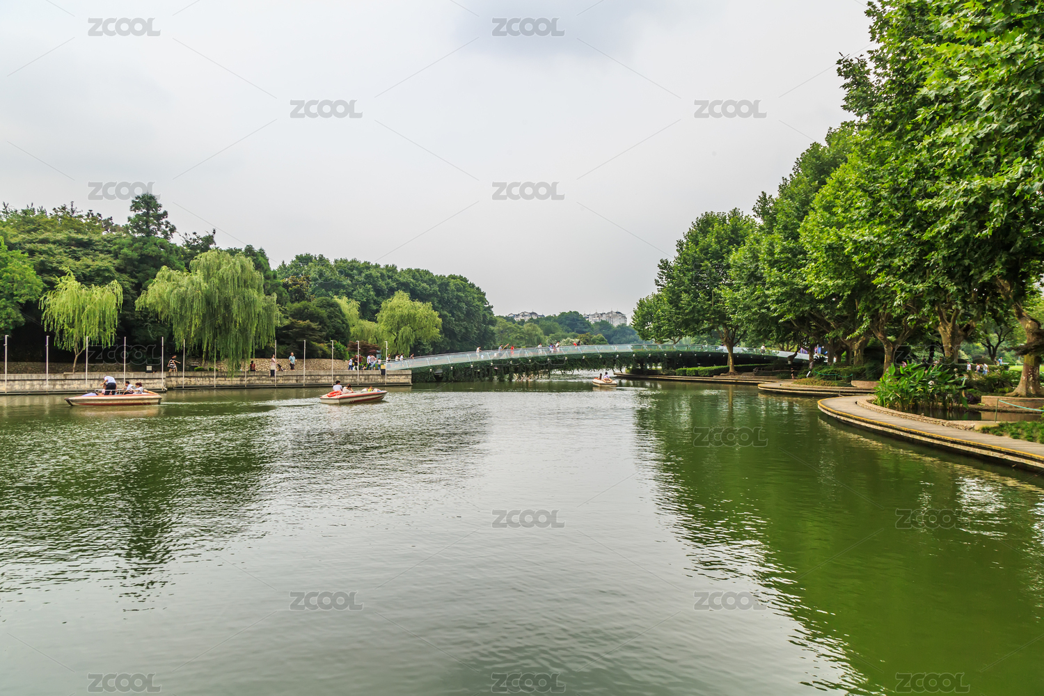 中国辽宁沈阳北陵公园的园林湖泊和游船