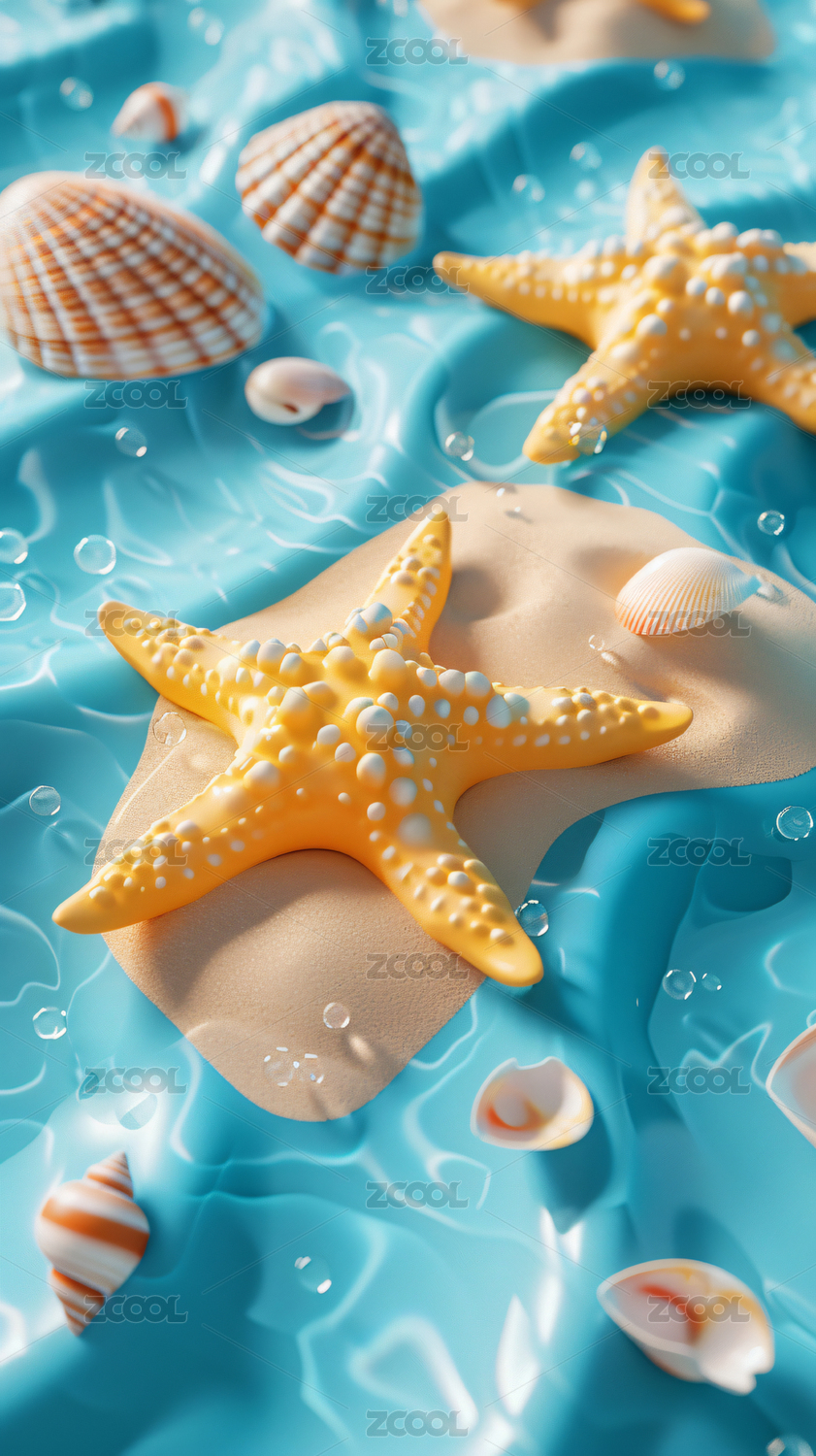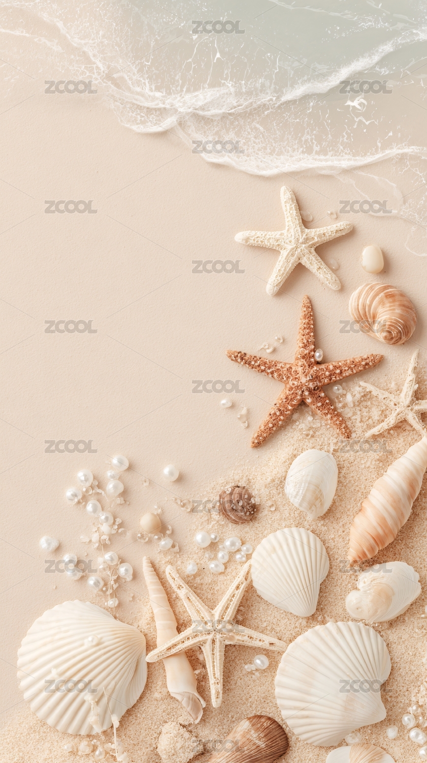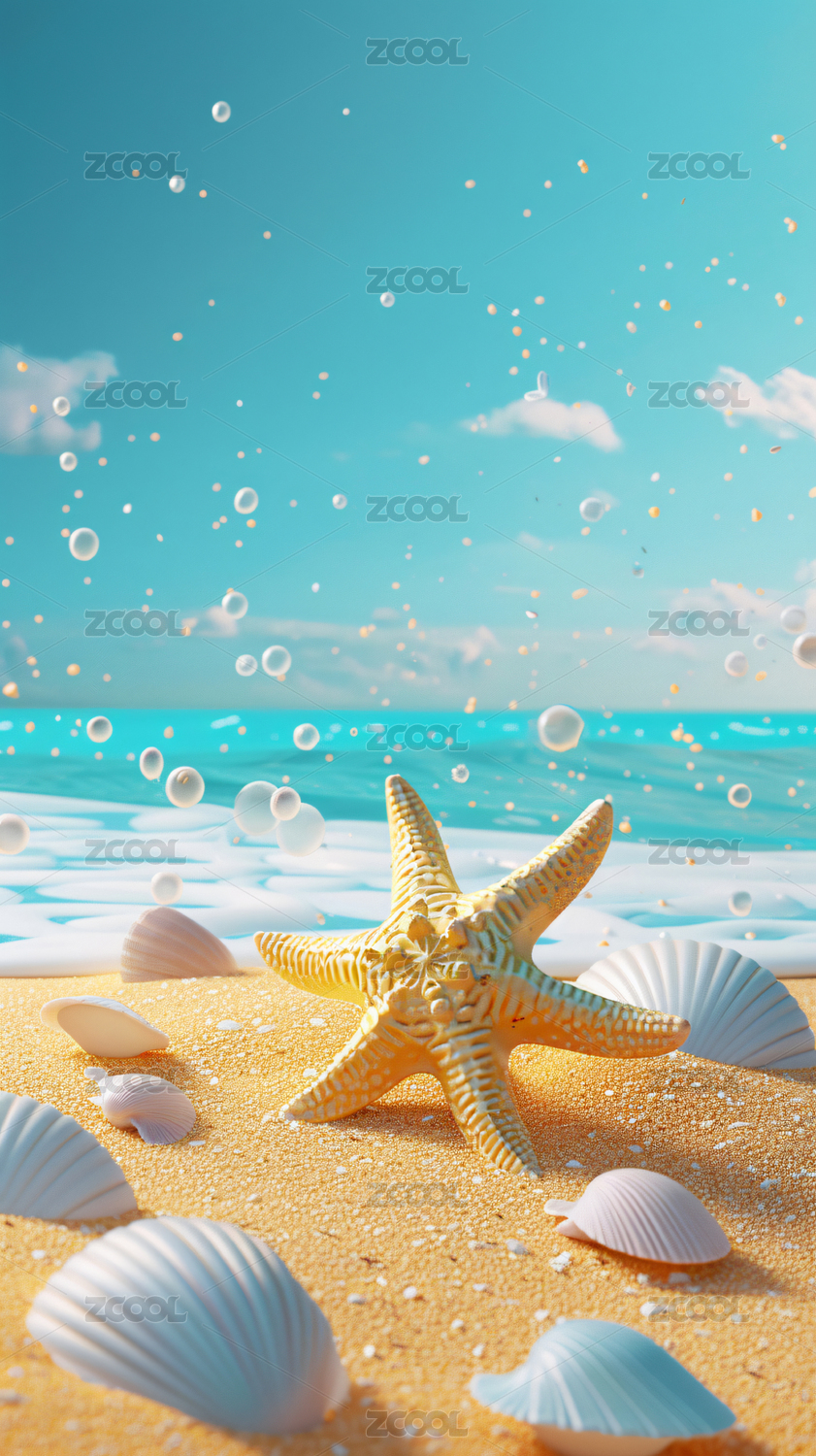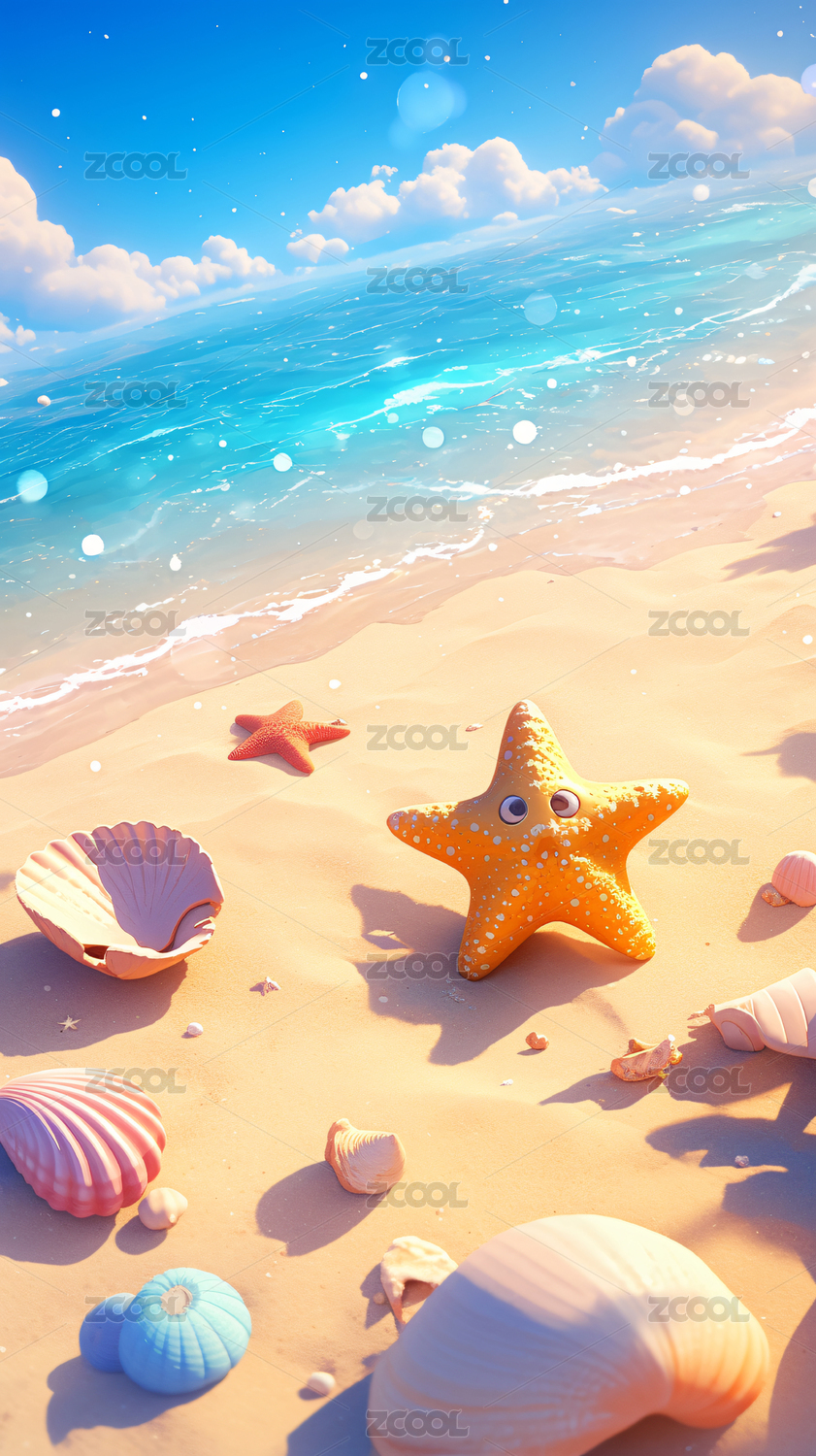 海滩, 贝壳, 海浪, 沙子, 海星, 海洋, 夏季