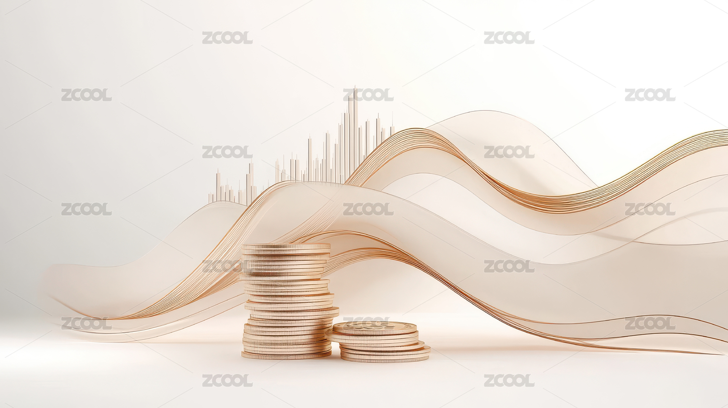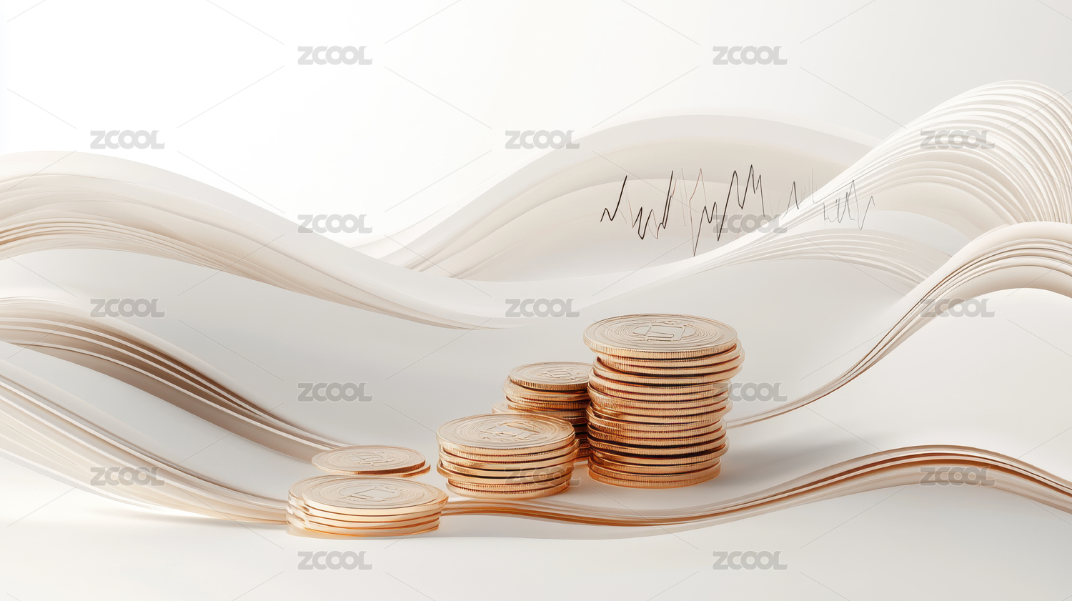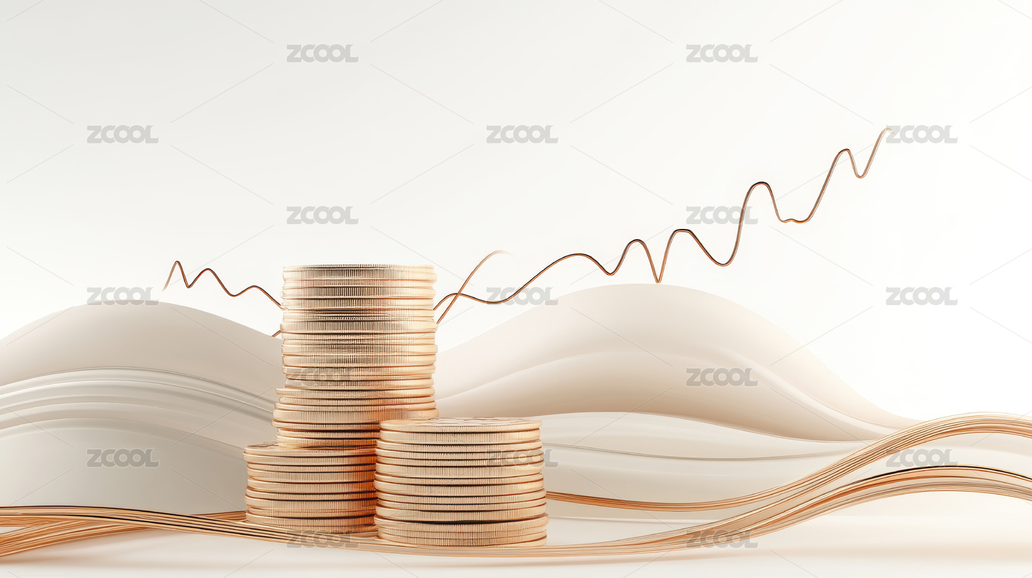 金币堆叠在曲线上的艺术构图