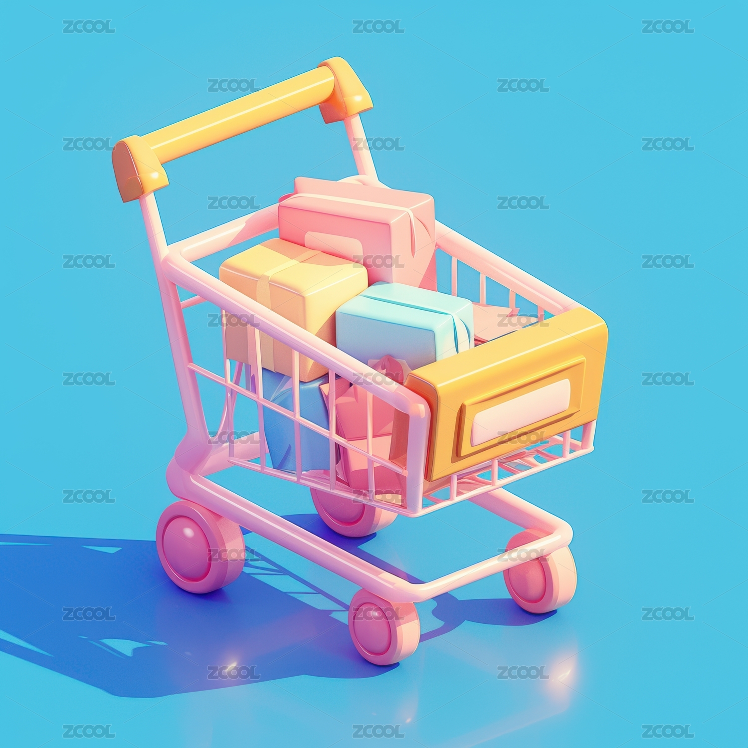 购物车3D立体卡通插画