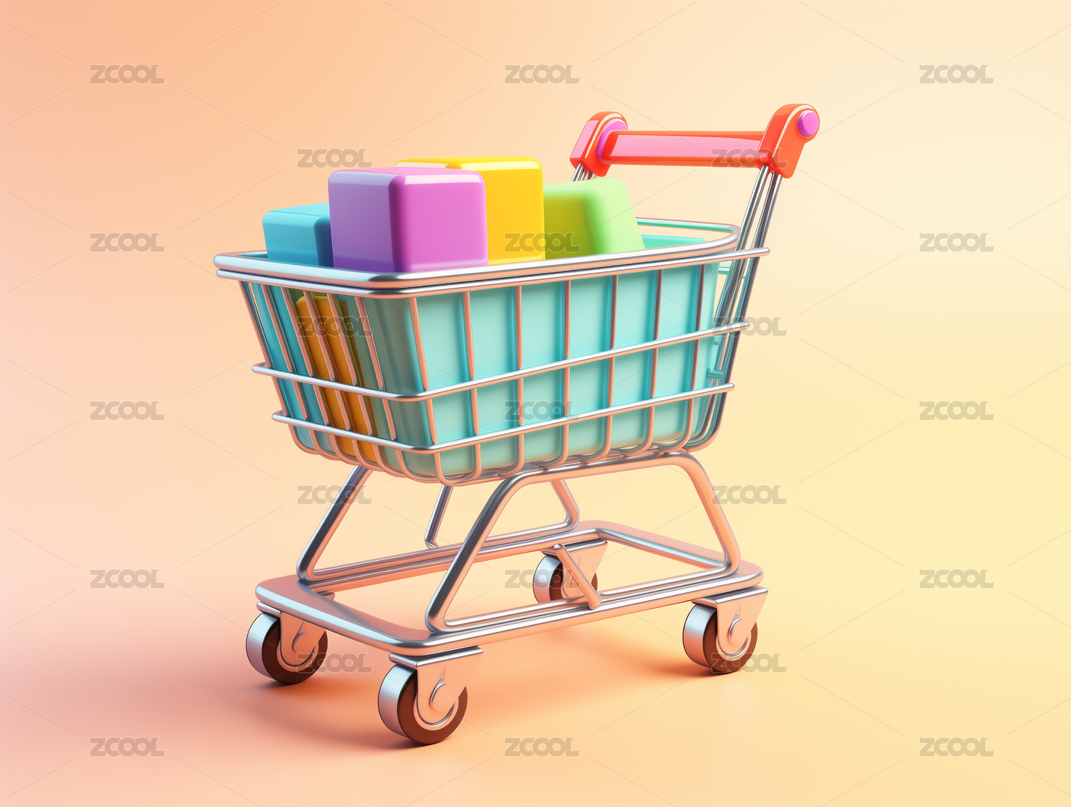 购物车里的彩色方块