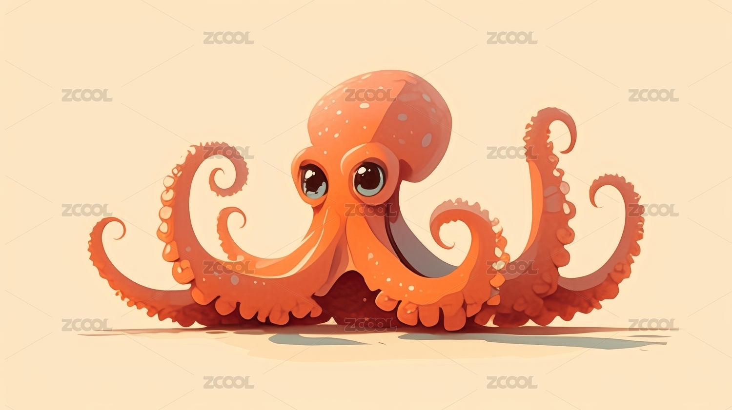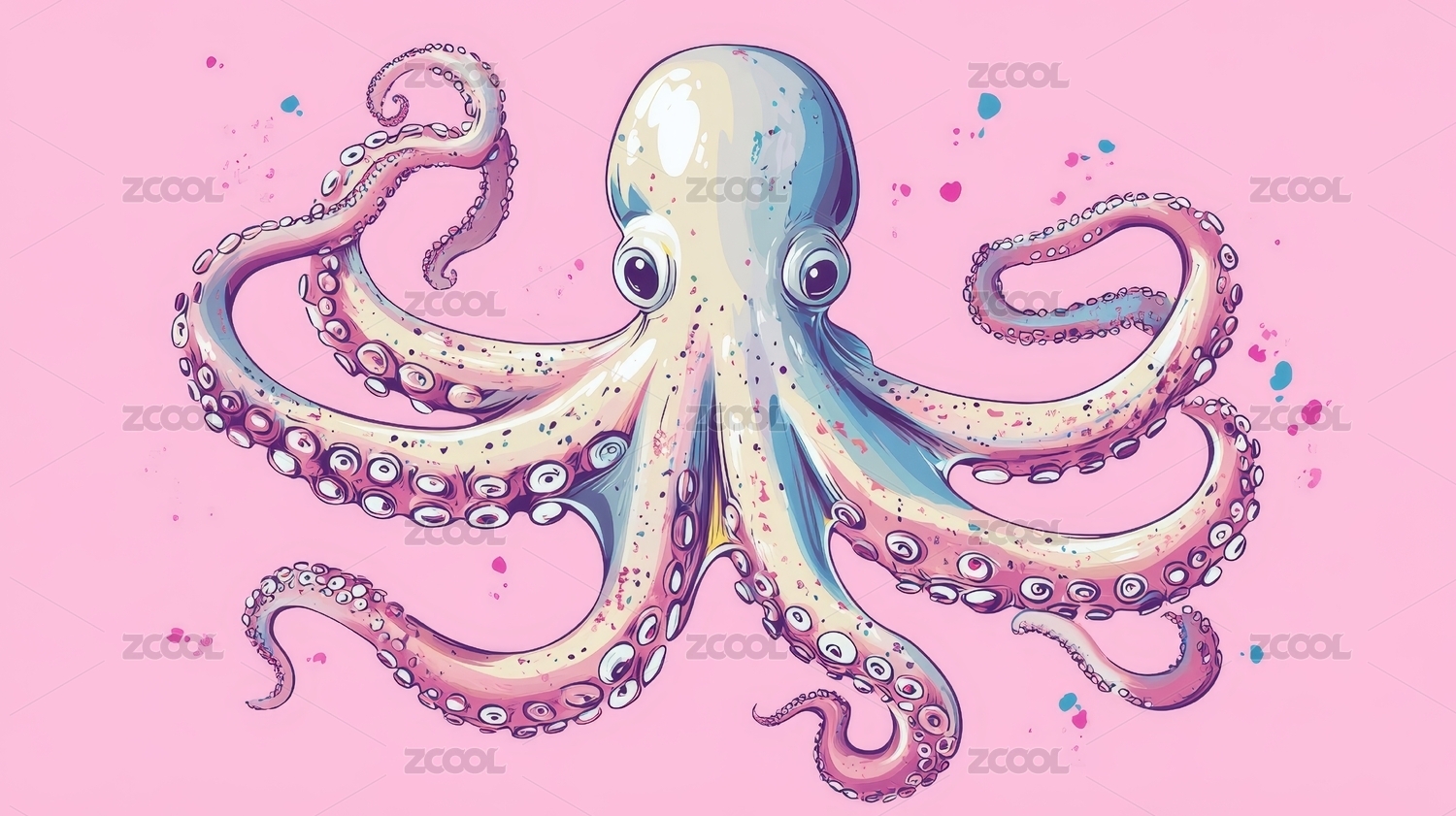 章鱼,卡通,触手,海洋,生物,粉红色,大眼睛,水彩画,可爱,动物