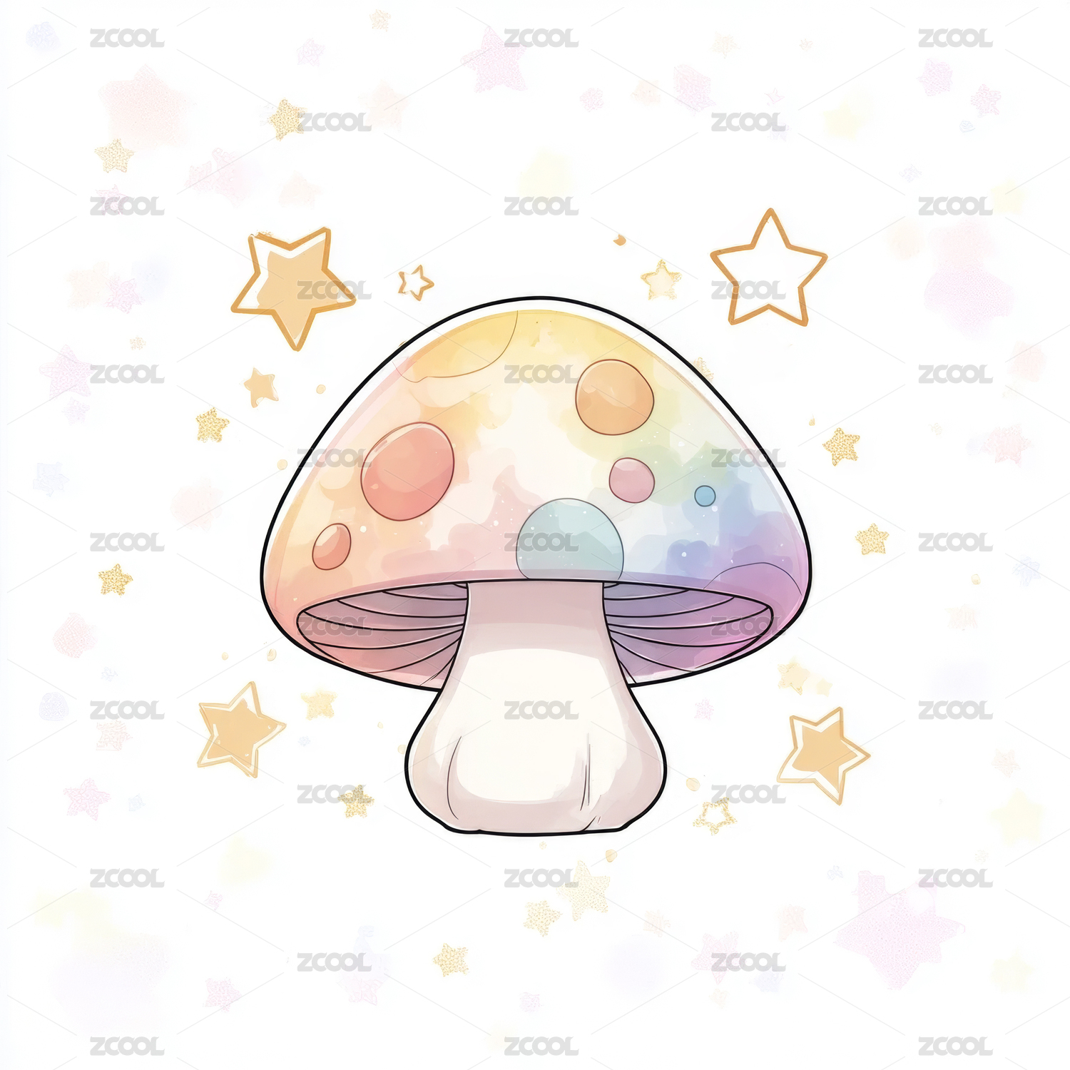 彩虹,蘑菇,章鱼,卡通,可爱,星星,触手,微笑,梦幻