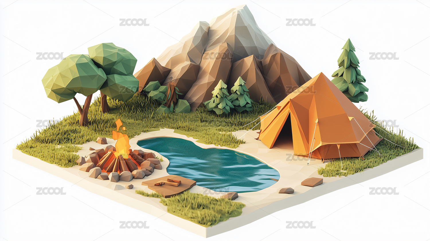 露营,帐篷,森林,树木,篝火,木柴,卡通,户外,自然,场景