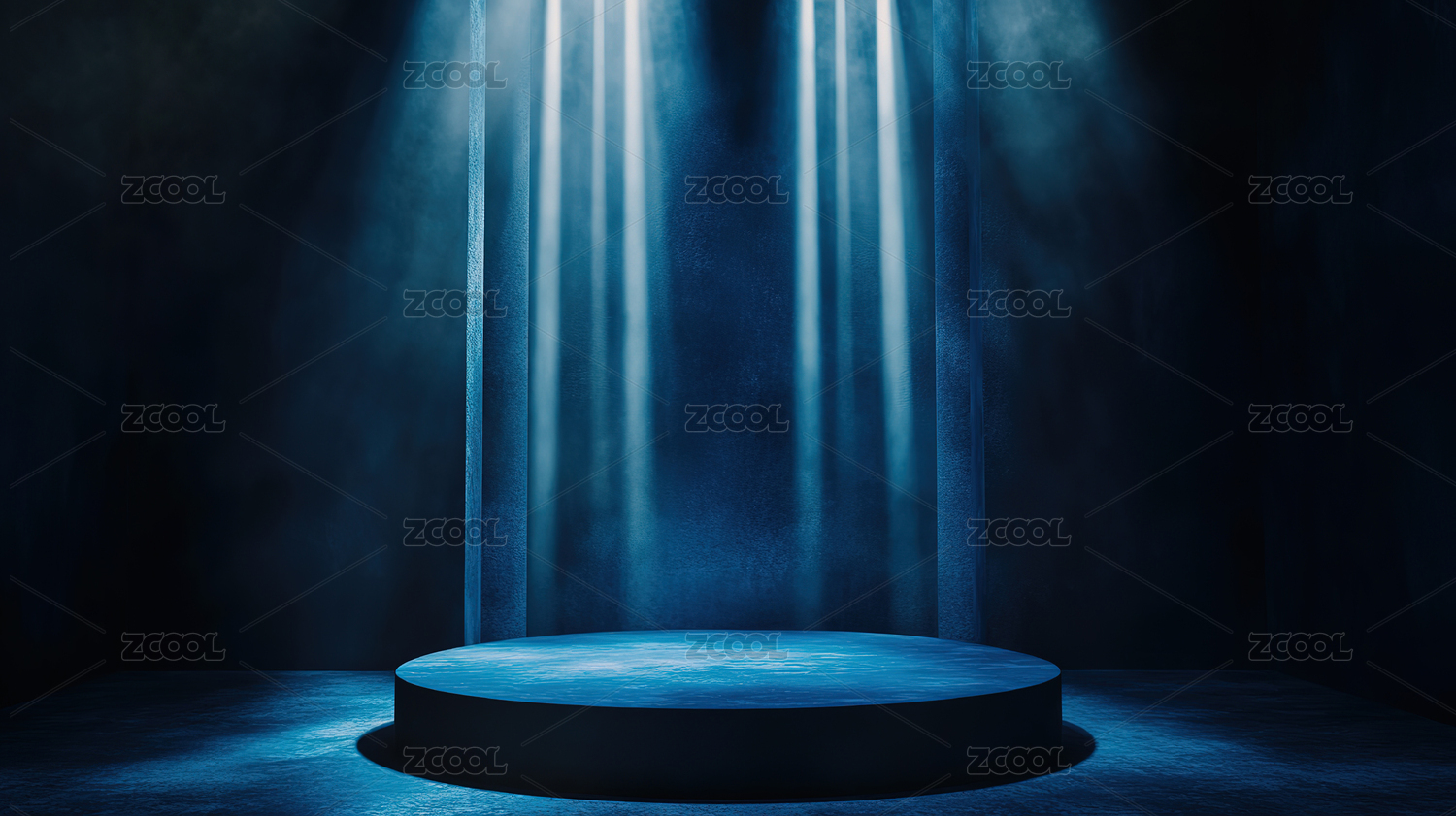 蓝色聚光灯下的圆形舞台背景