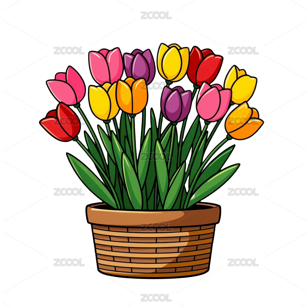 郁金香,花篮,鲜花,花卉,春天,礼物,装饰,水彩,绘画,花束