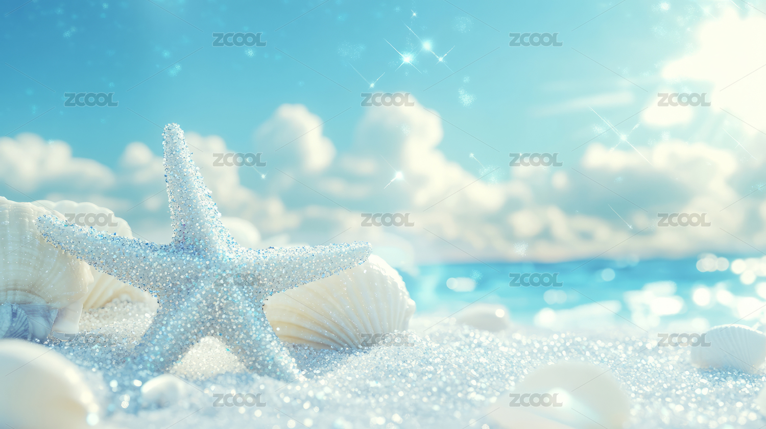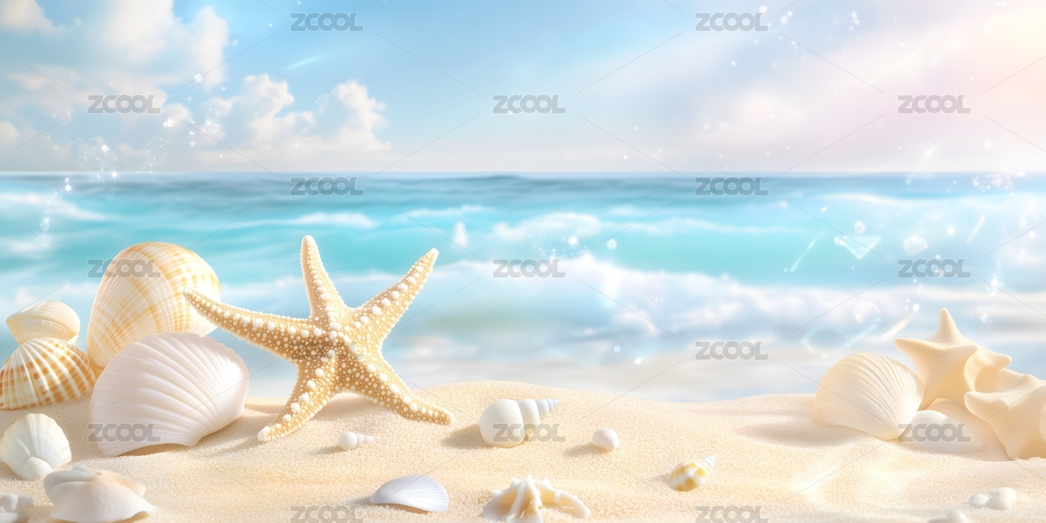 海星贝壳沙滩梦幻场景