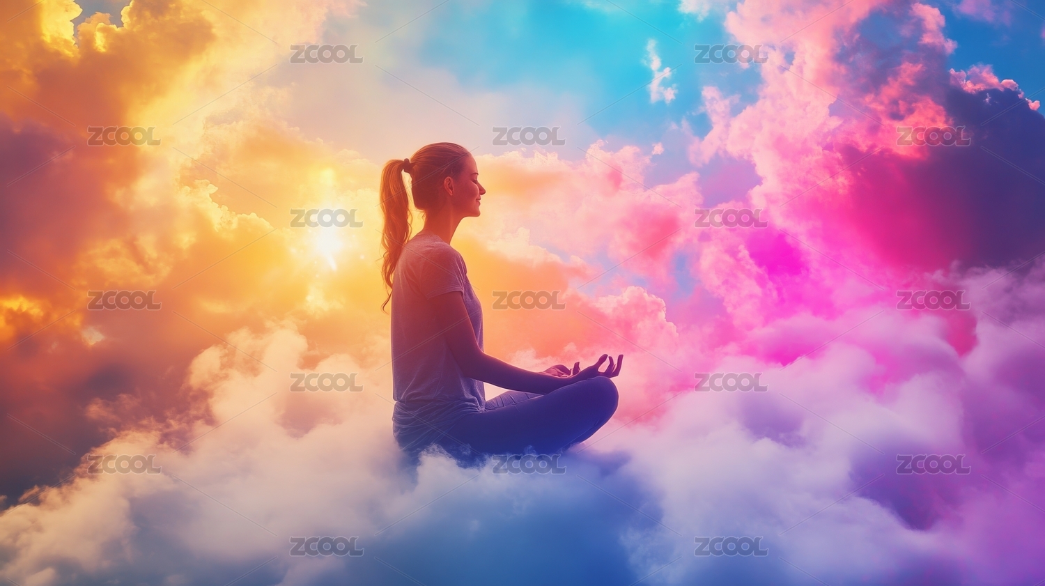 现代,健康,简约,数字,幻想,女性,冥想,安静,室内,虚拟背景