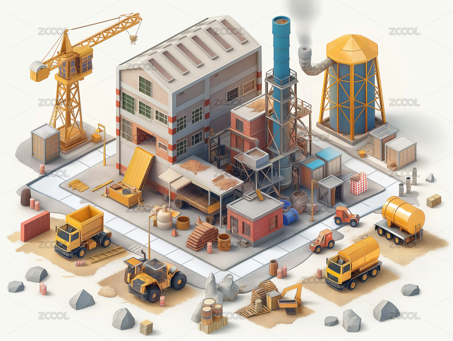 拖拉机,挖掘机,工业,设施,农业,机械,工厂,烟囱,储罐,玩具