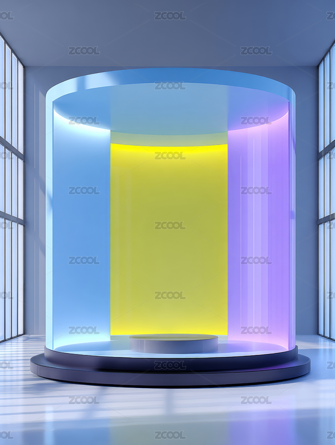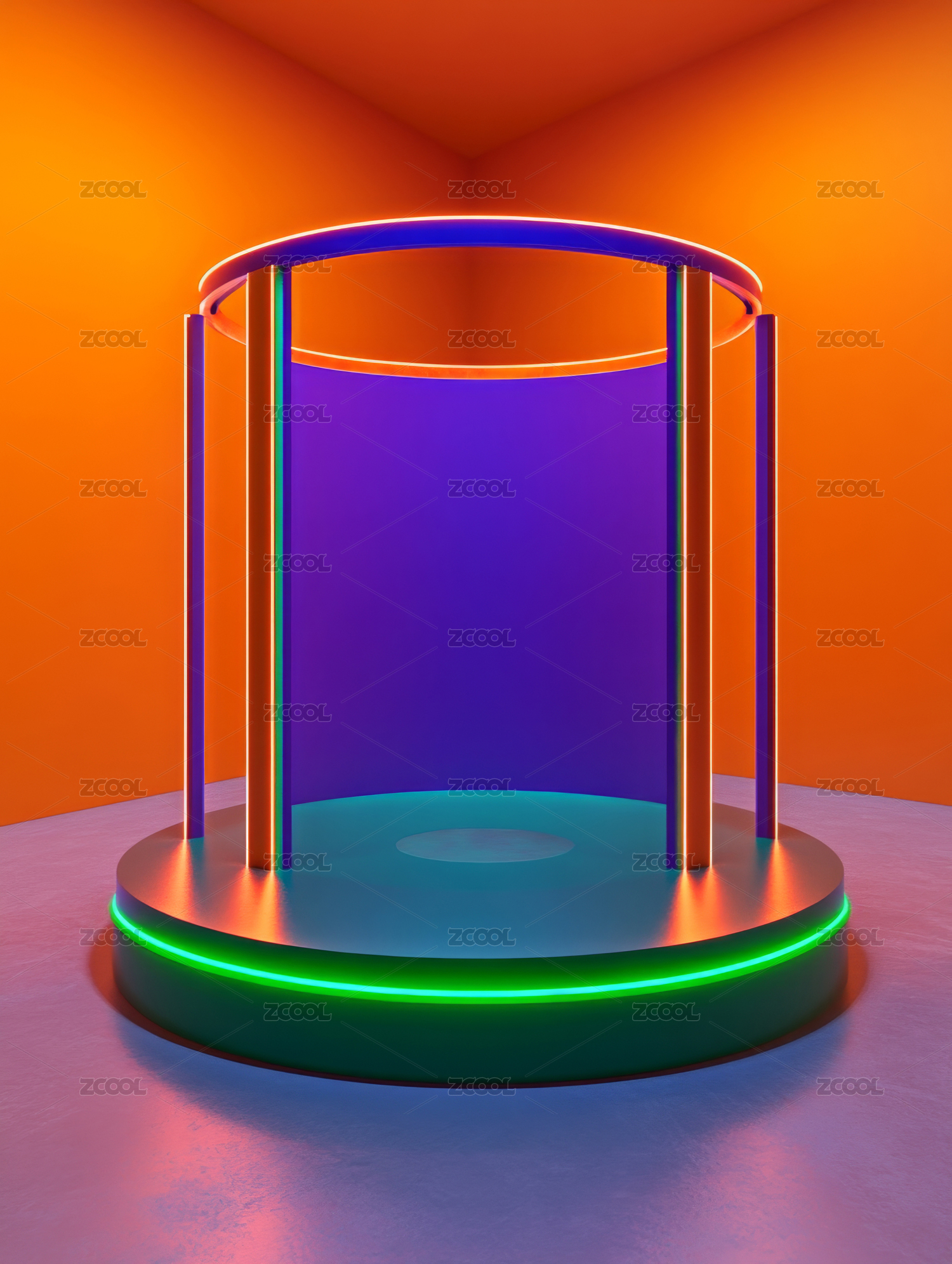 未来感,展示台,霓虹灯,橙色,蓝色,绿色,科技,现代,设计