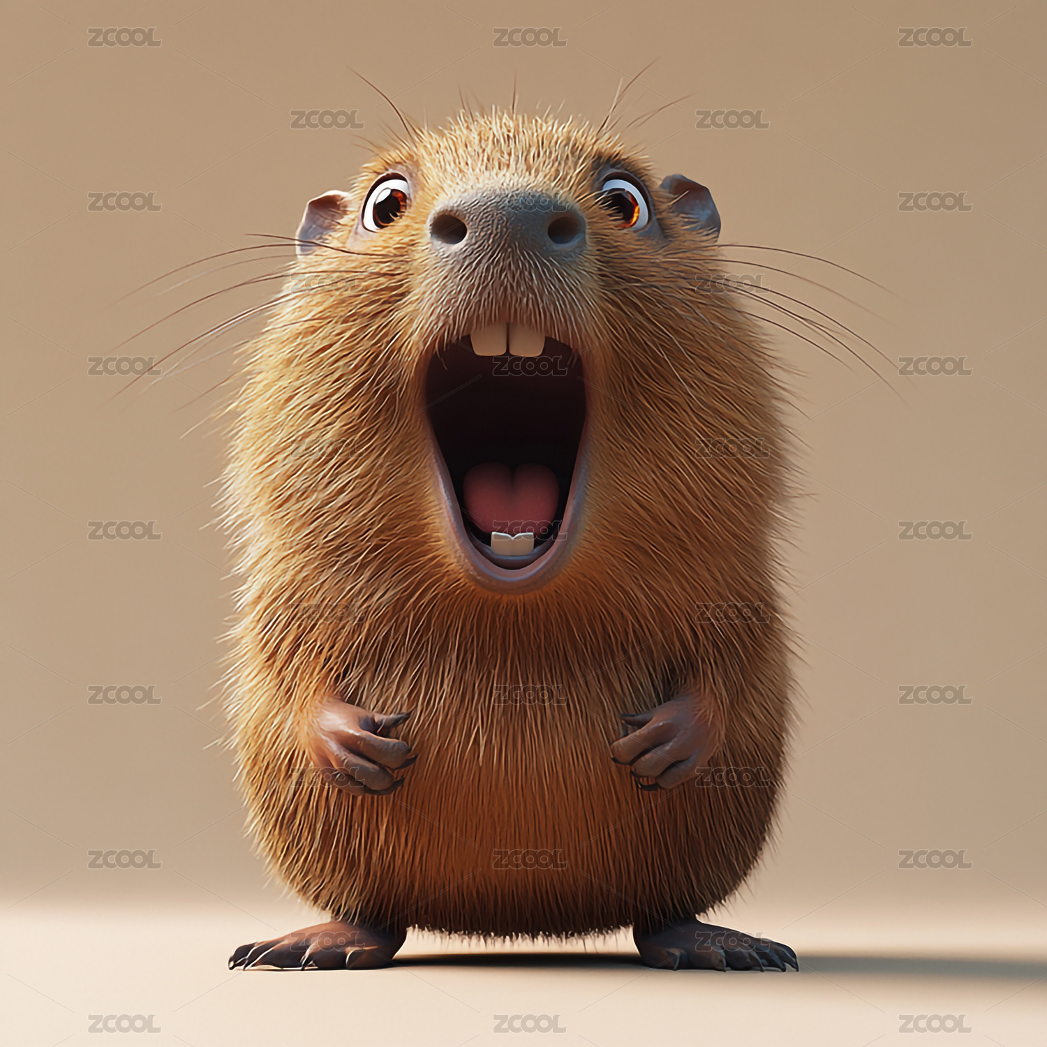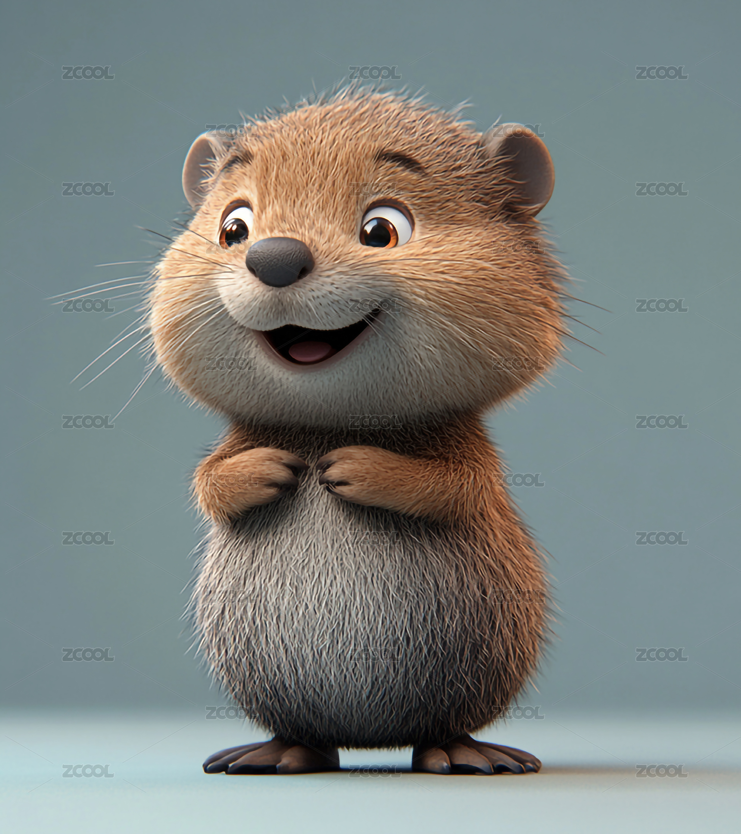 卡通,土拨鼠,可爱,棕色,微笑,动物,毛茸茸,插画