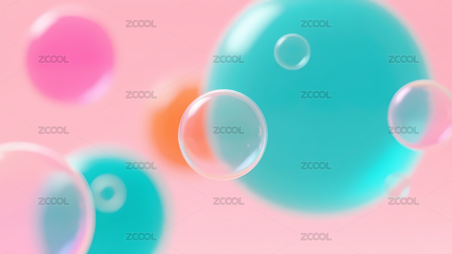 透明泡泡与粉色背景