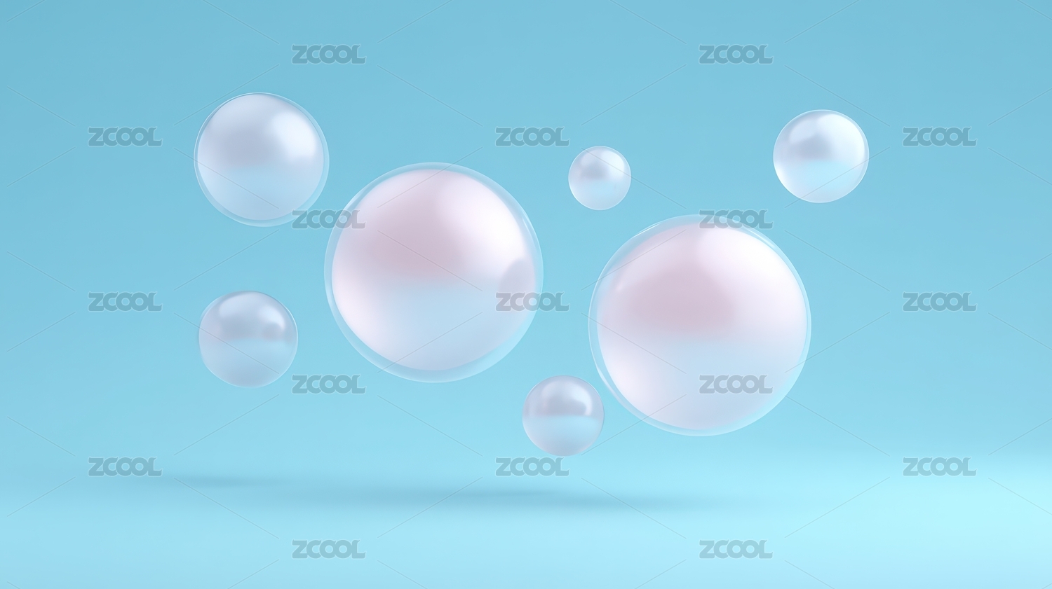 浅蓝色背景下的透明梦幻泡泡背景
