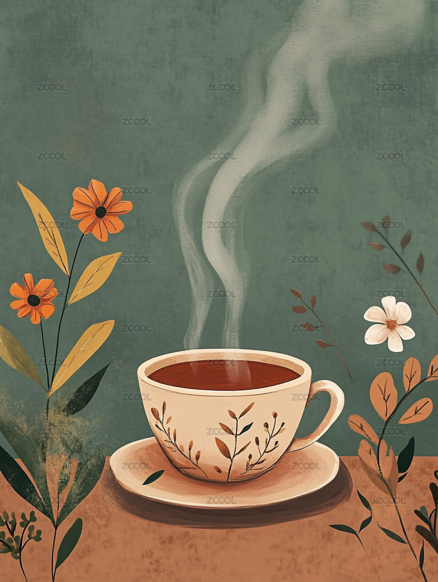 花,花朵,艺术,背景,静物,茶,茶杯,复古,水彩,图案