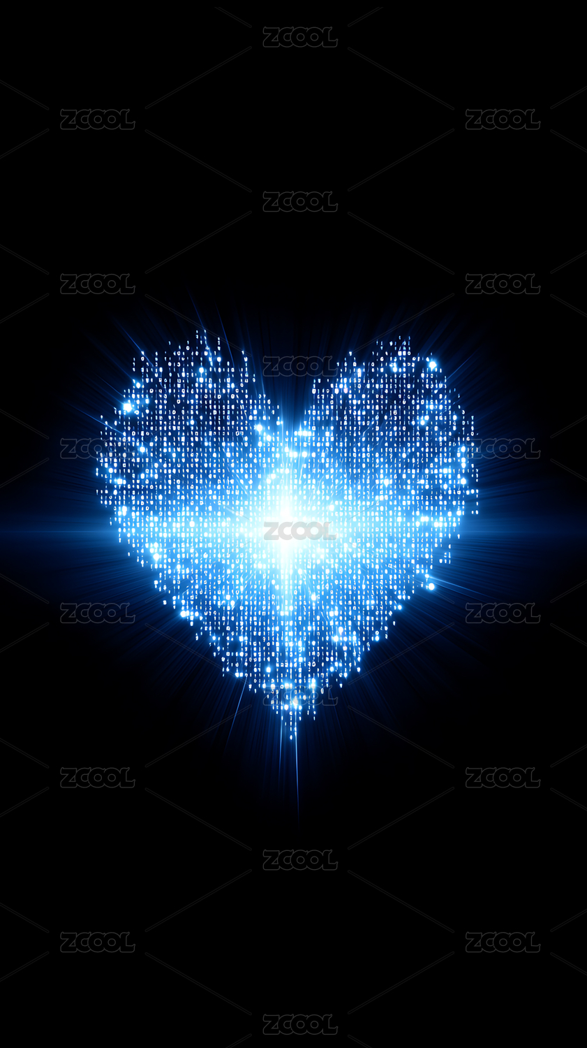 蓝色光芒环绕的心形图案
