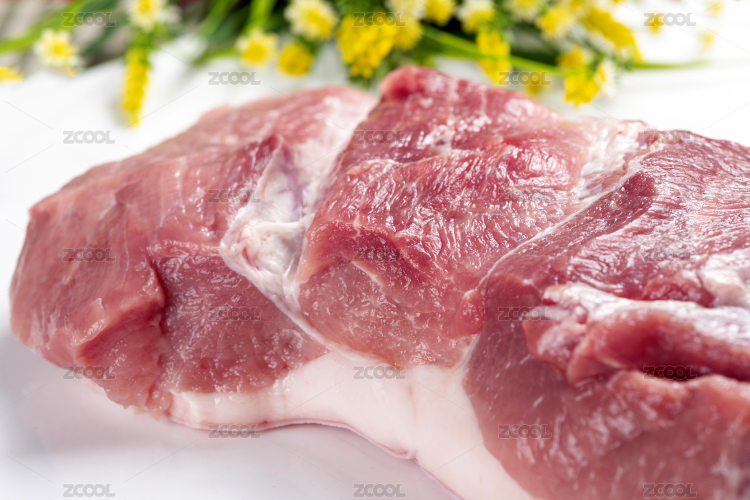 白色背景下的新鲜猪肉