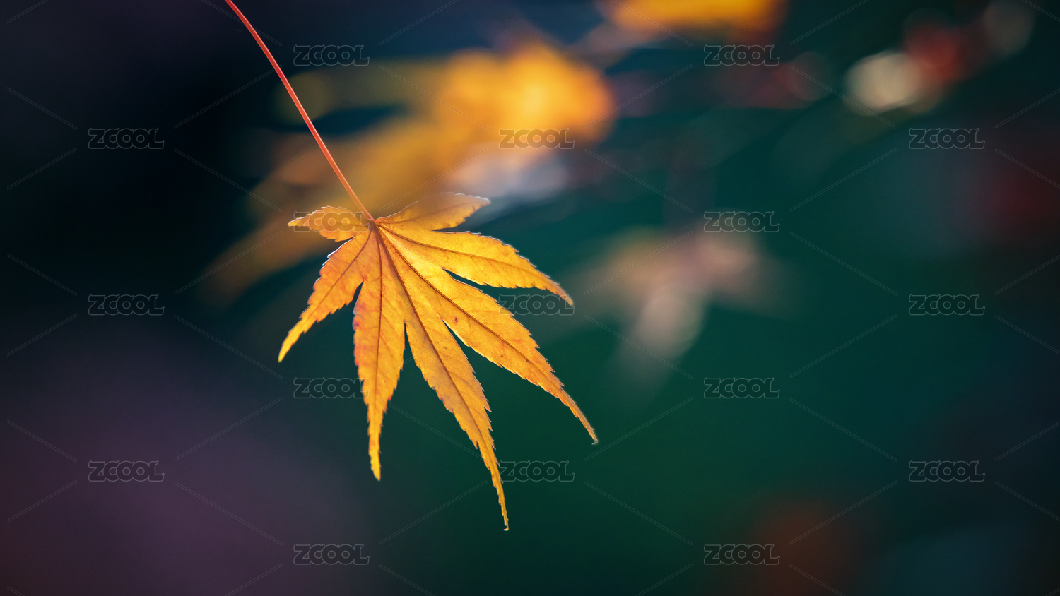 金黄枫叶于暗背景中独绽