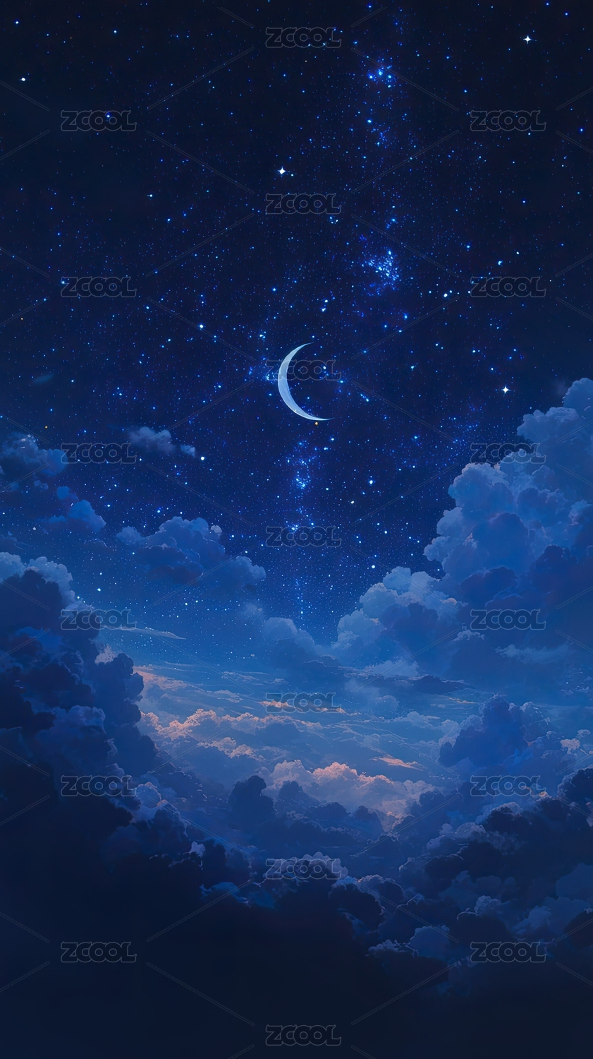 梦幻星空弯月绚烂图景