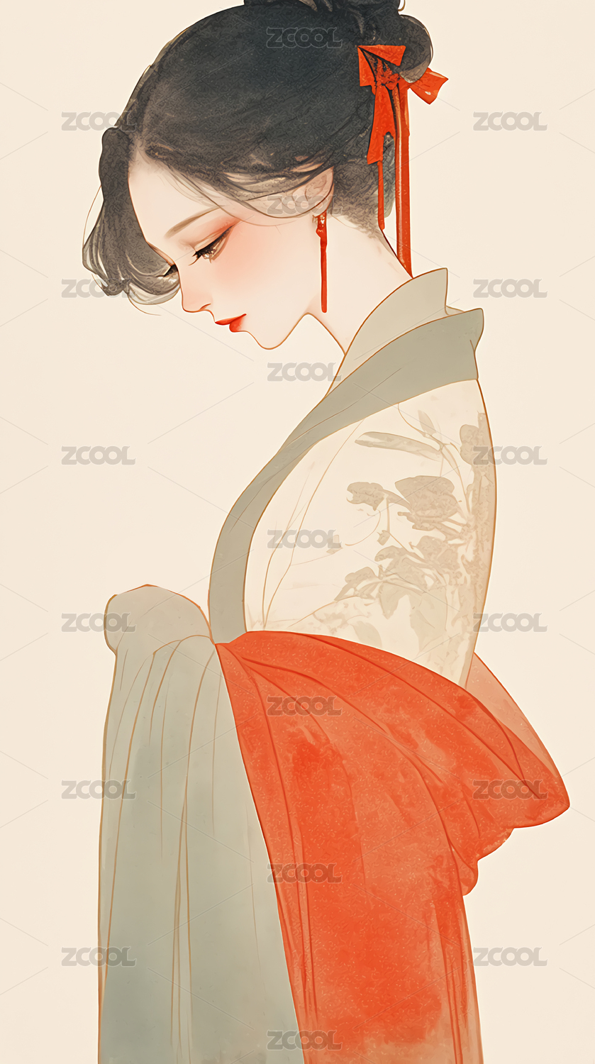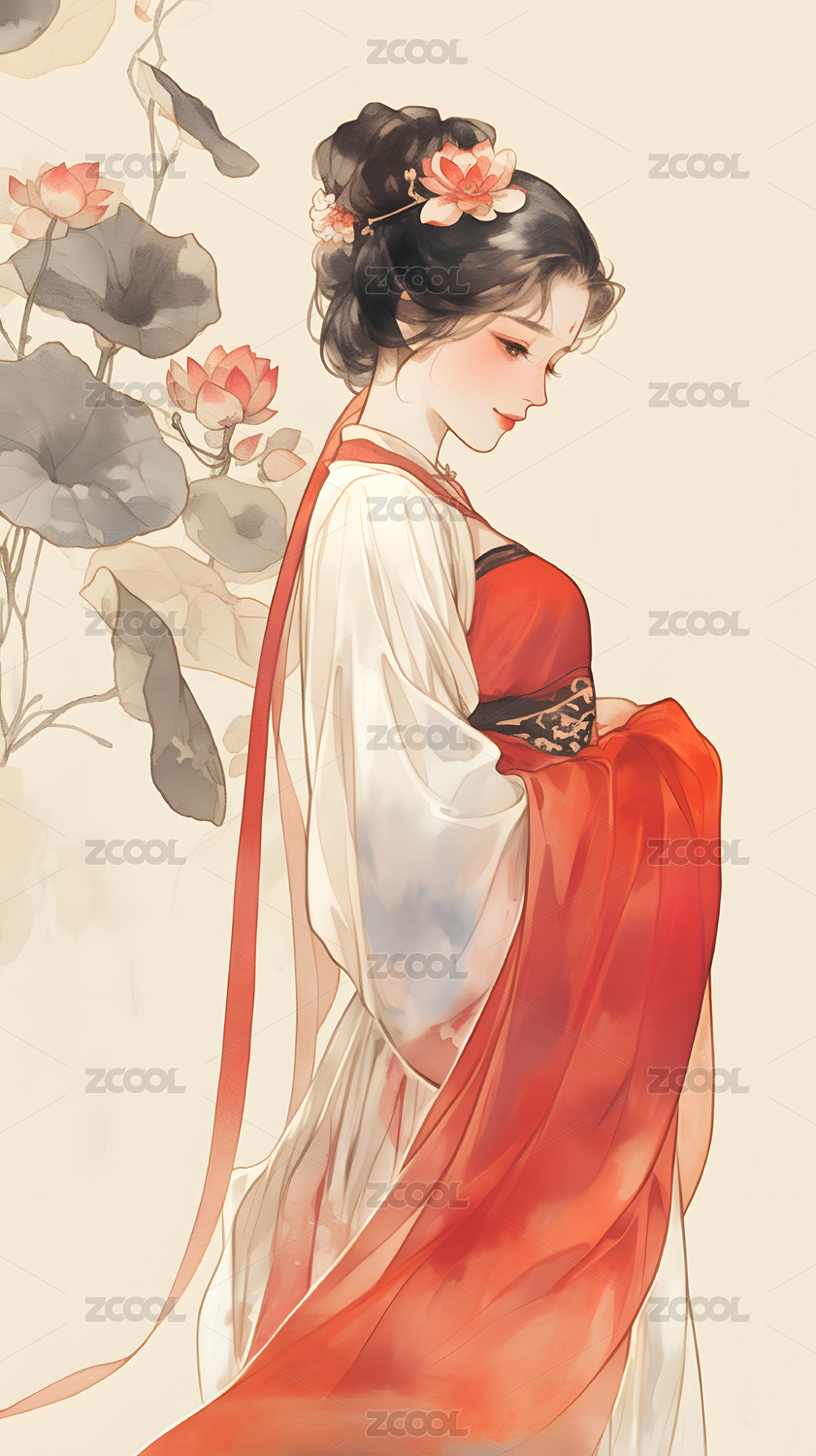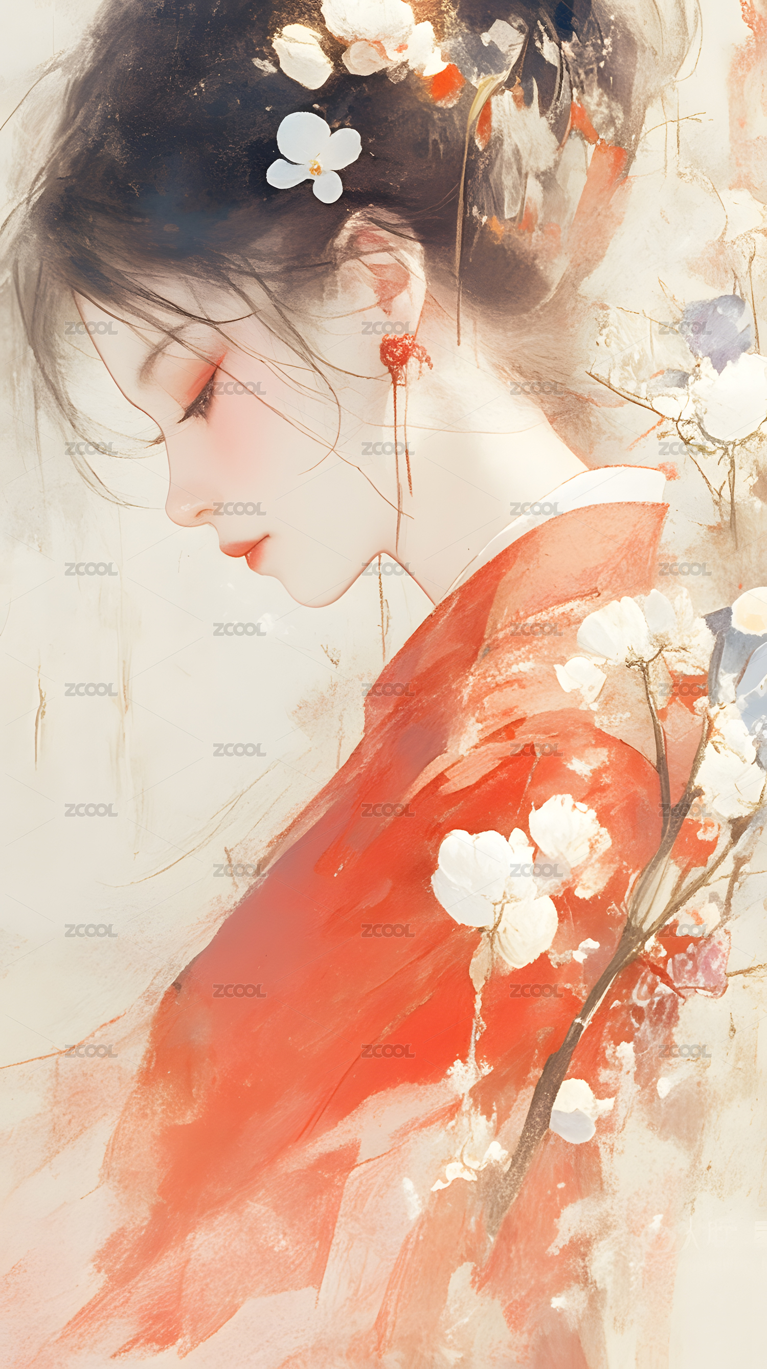 女子,水彩画,古风,意境,唯美,温柔,清新,淡雅,浪漫,艺术