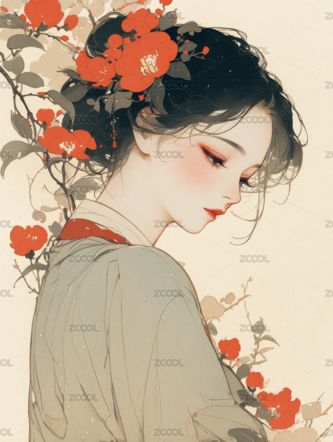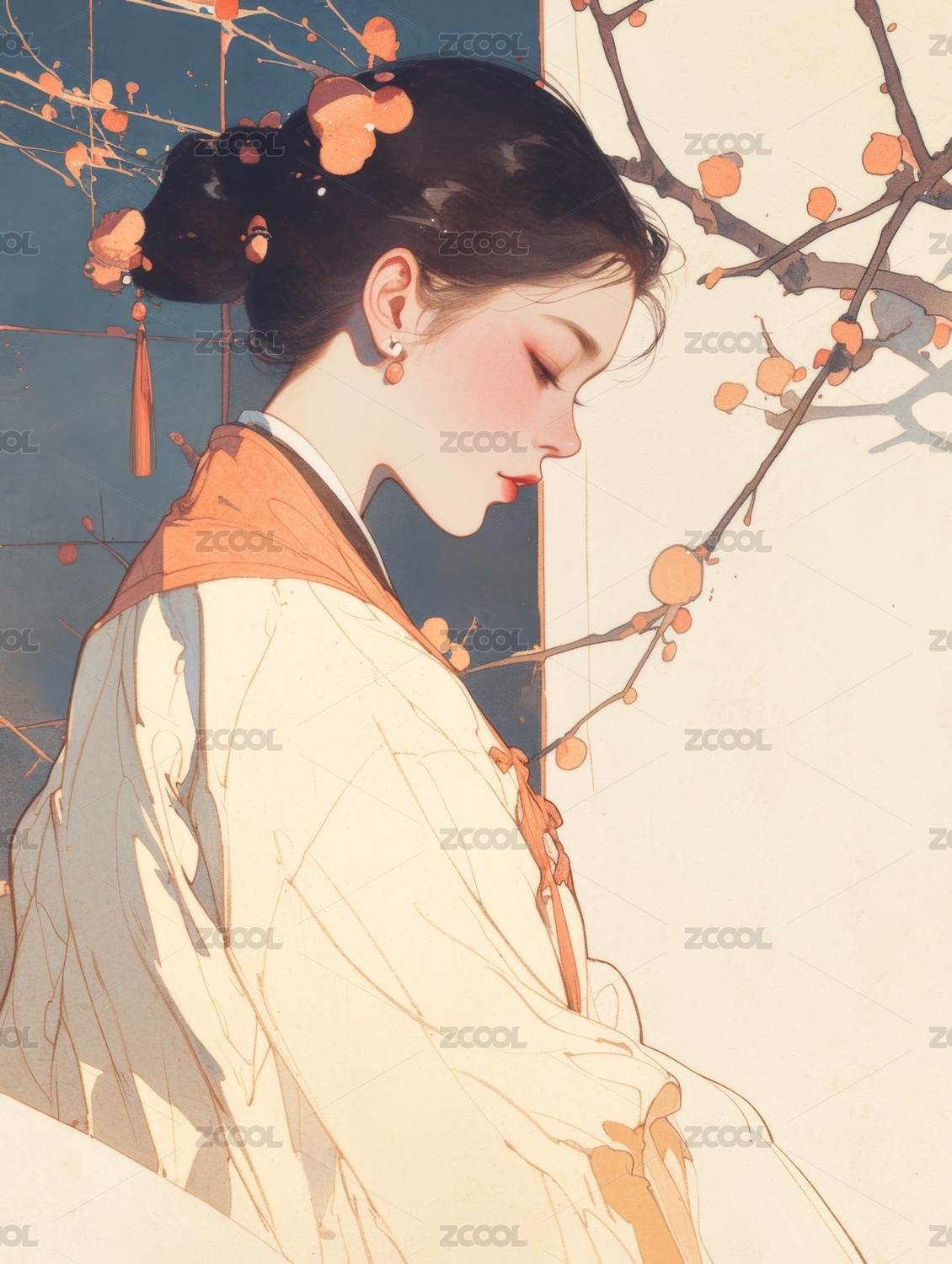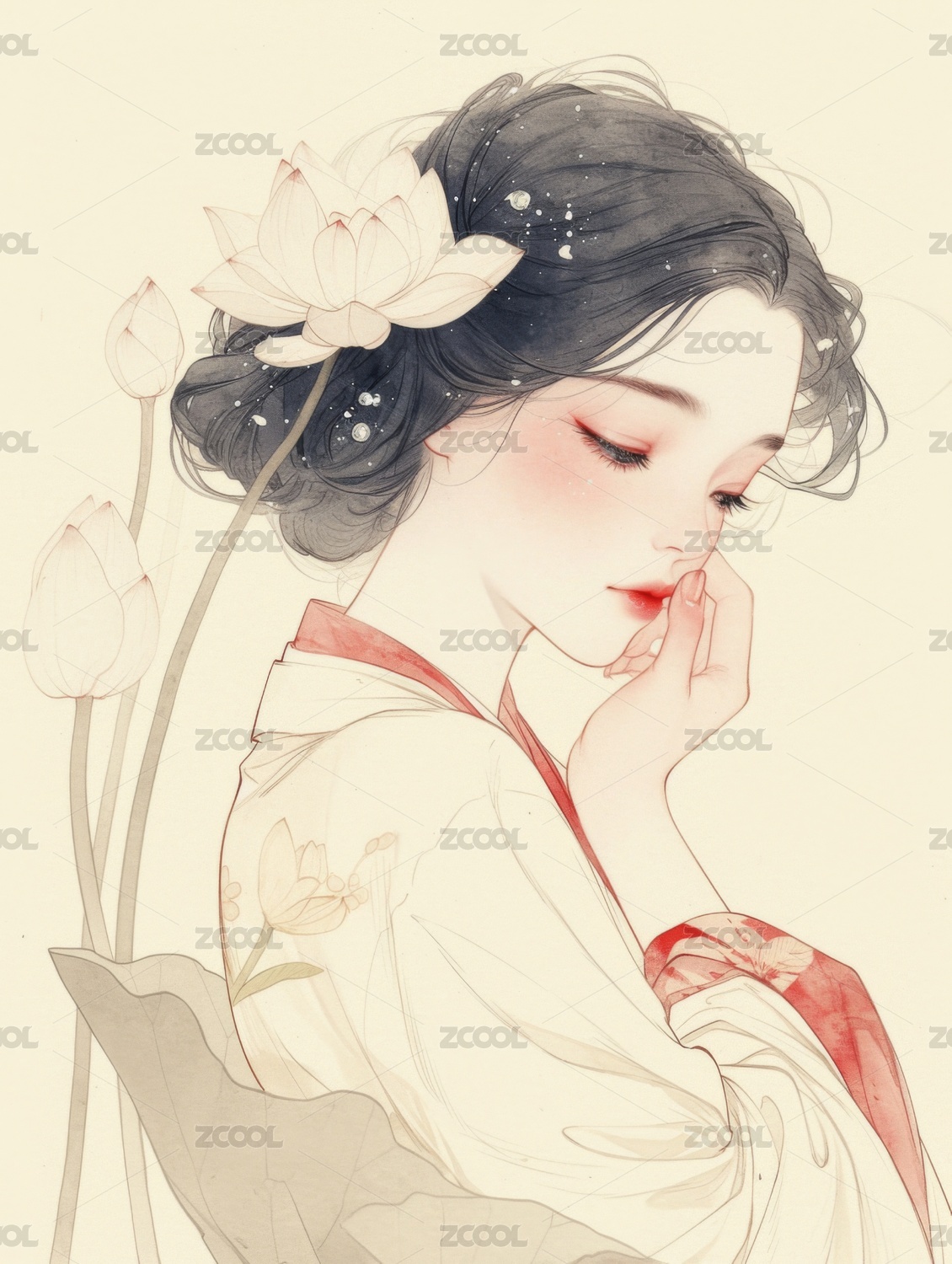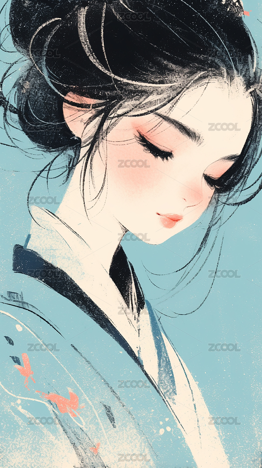 女子,水彩画,古风,意境,唯美,温柔,清新,淡雅,浪漫,艺术