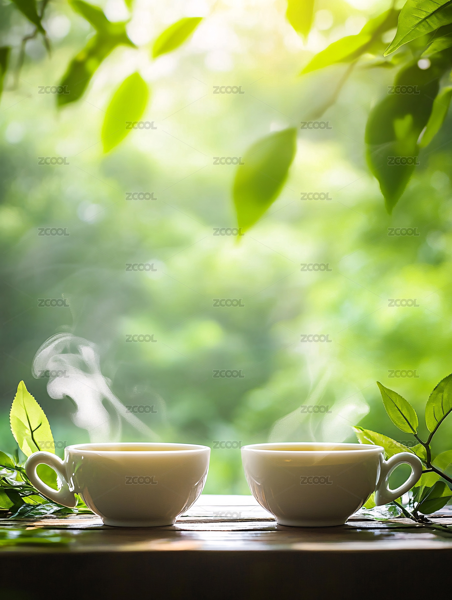 阳光,茶壶,绿植,木桌,自然,清新,静谧,光影,茶杯,光斑