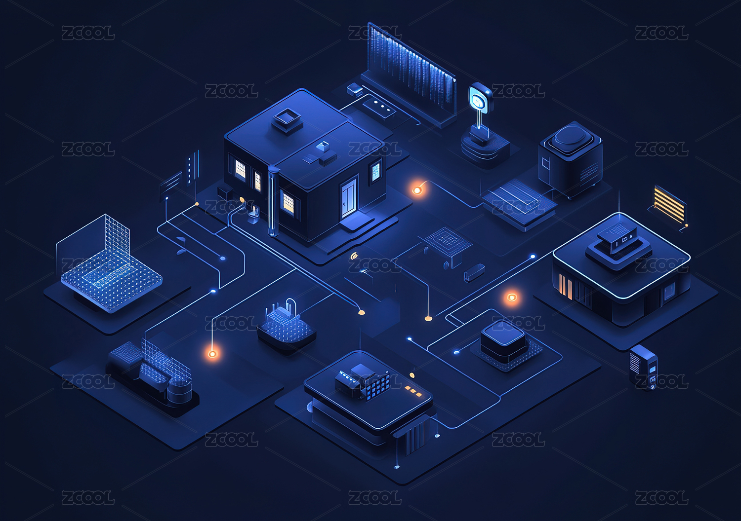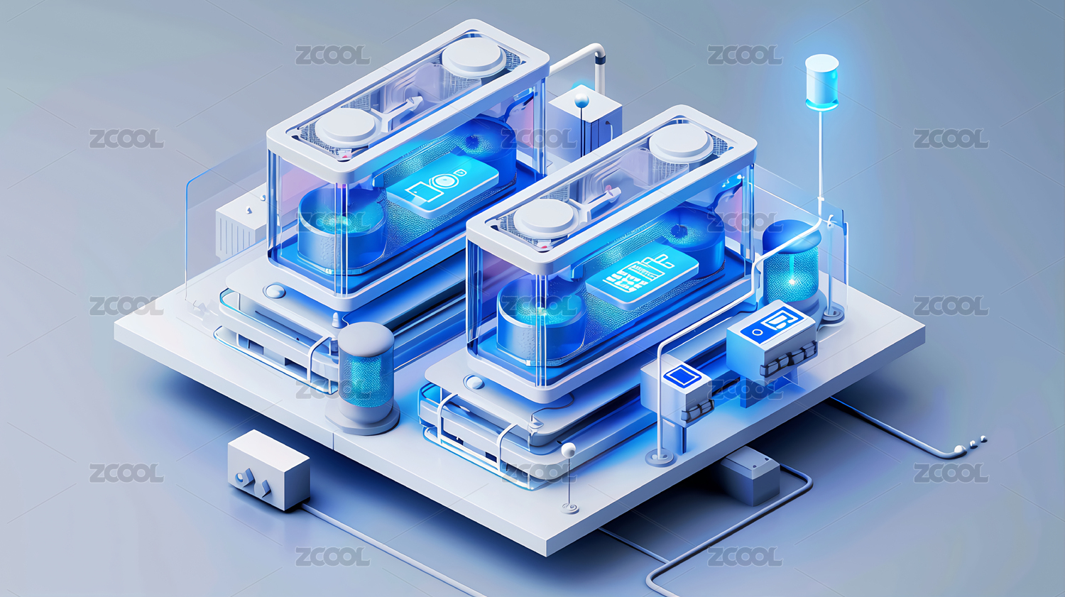 3D立体建模俯视全景工厂建筑科技生产蓝色