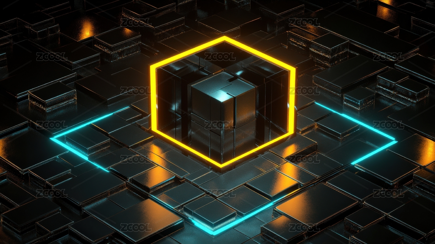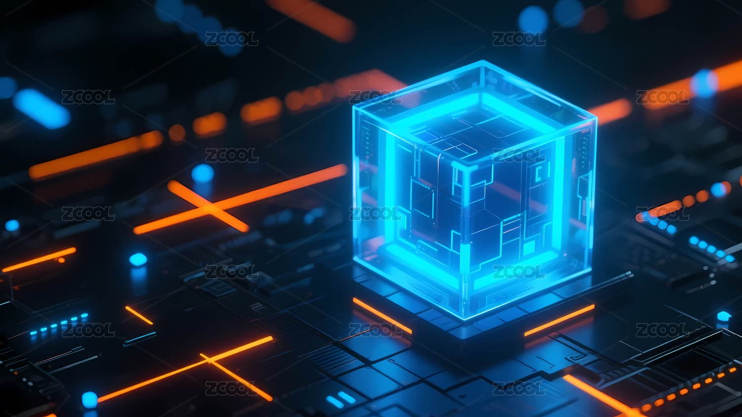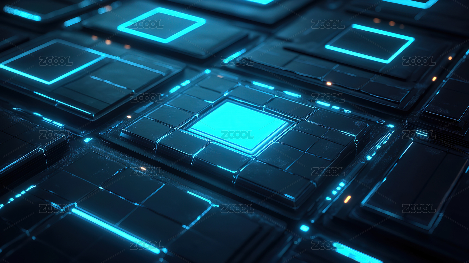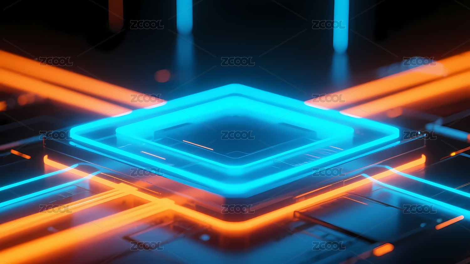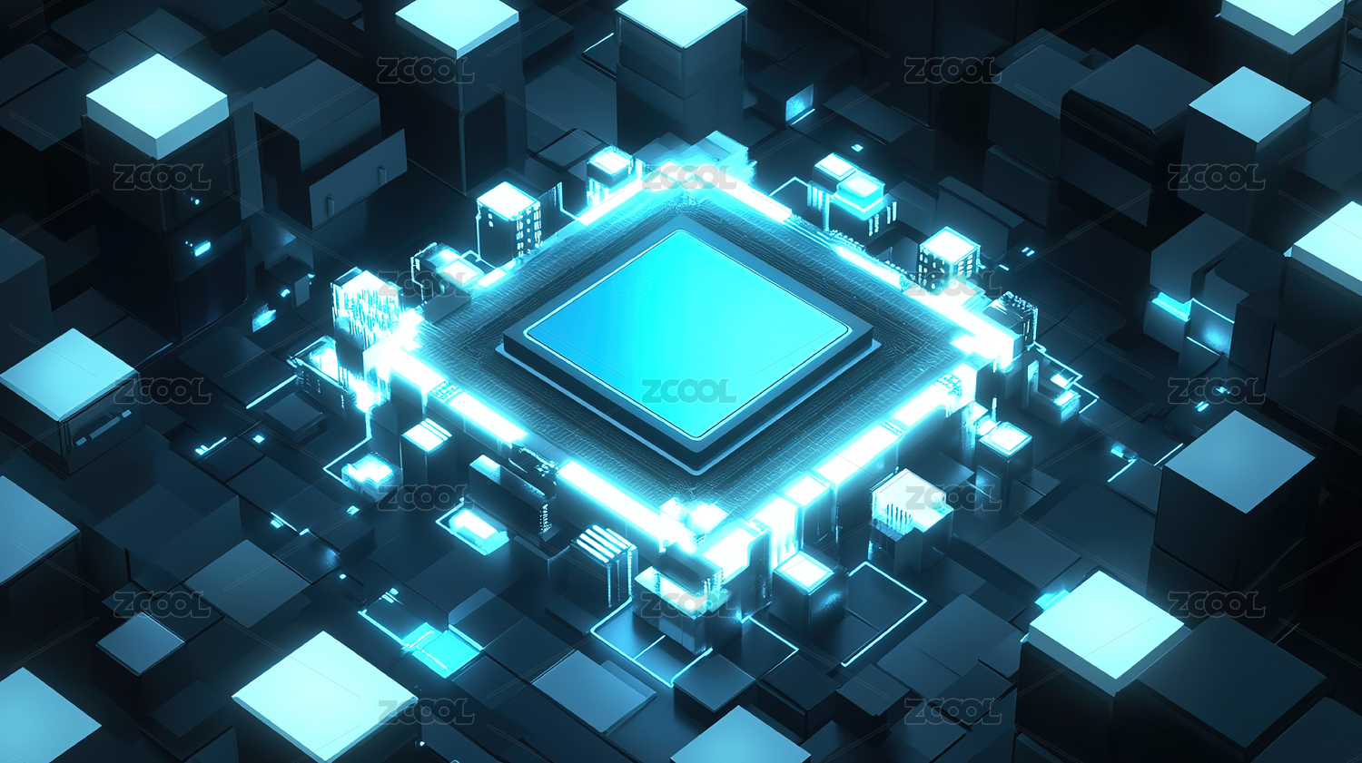 芯片金融科技赛博朋克人工智能三维渲染电路