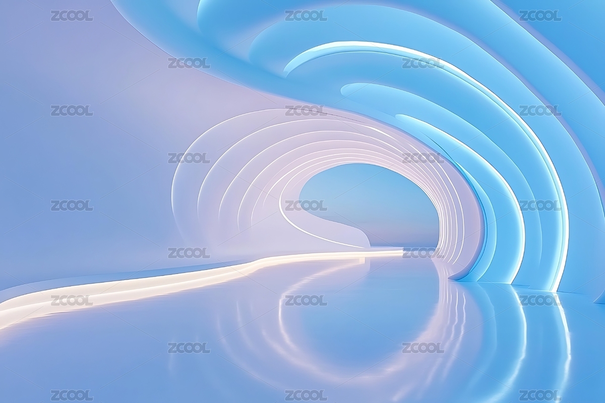 现代,艺术,抽象,梦幻,曲线,蓝色,未来感,柔和,空间,简约