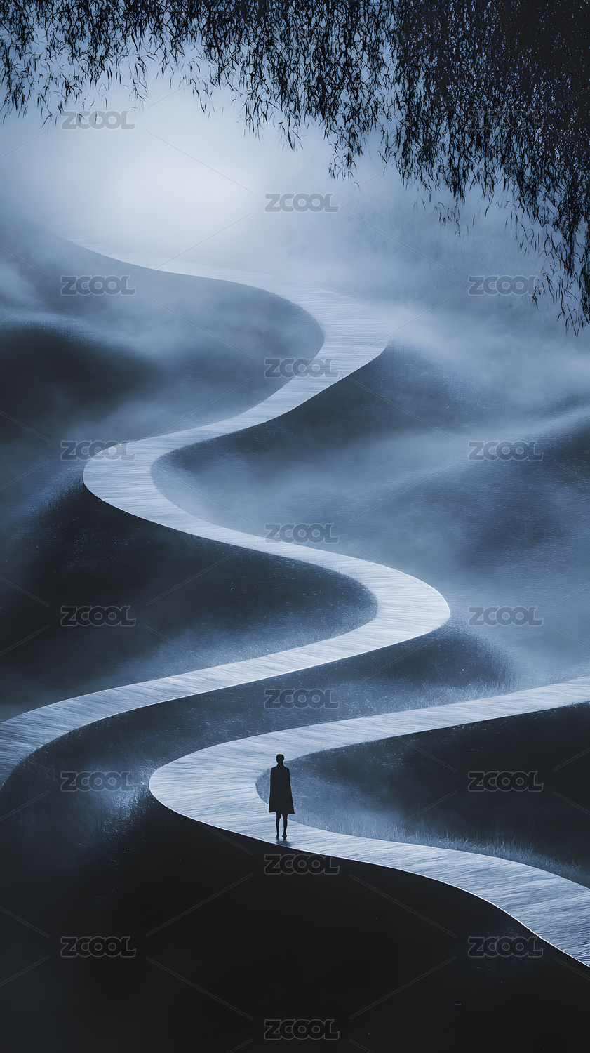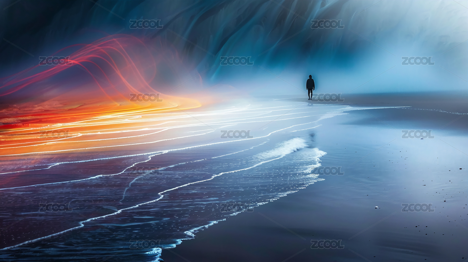 水面,涟漪,人影,孤独,夕阳,红色,平静,抽象,艺术,插画