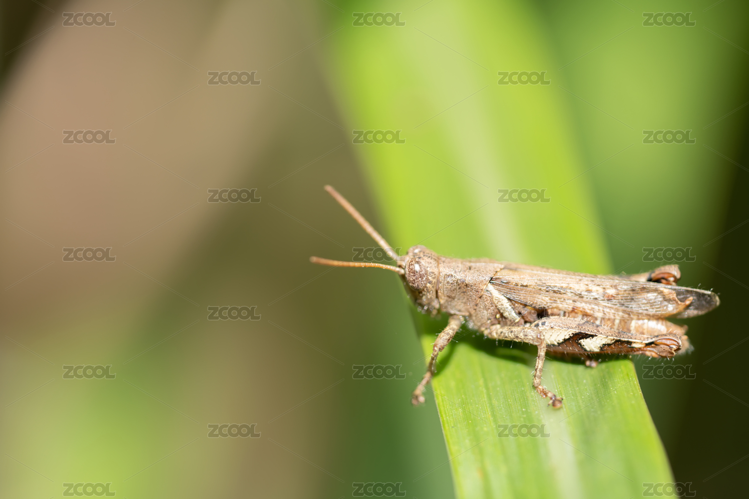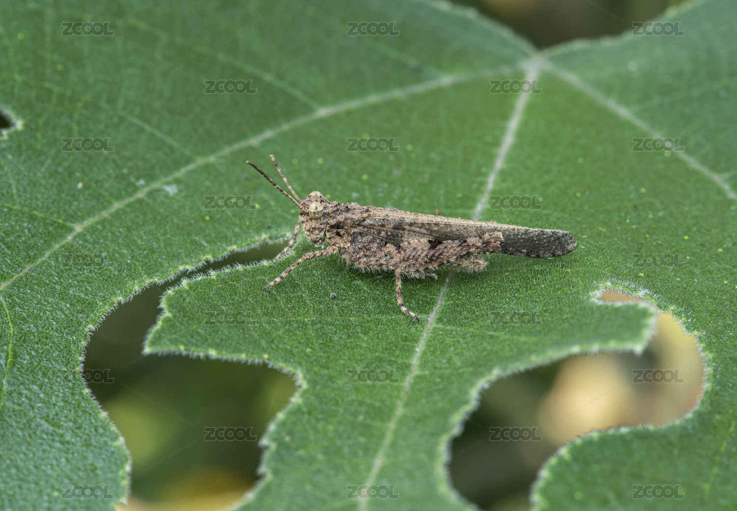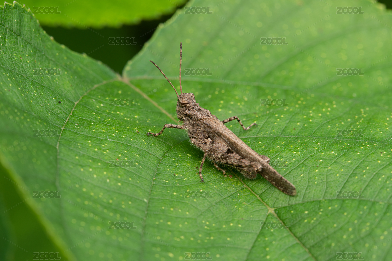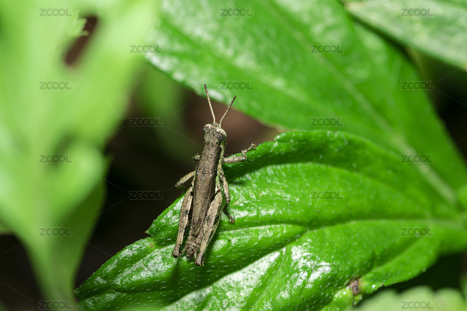 绿叶上的蝗虫微距特写