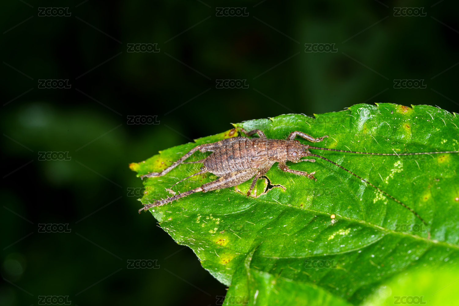 微距下绿叶上的蟋蟀