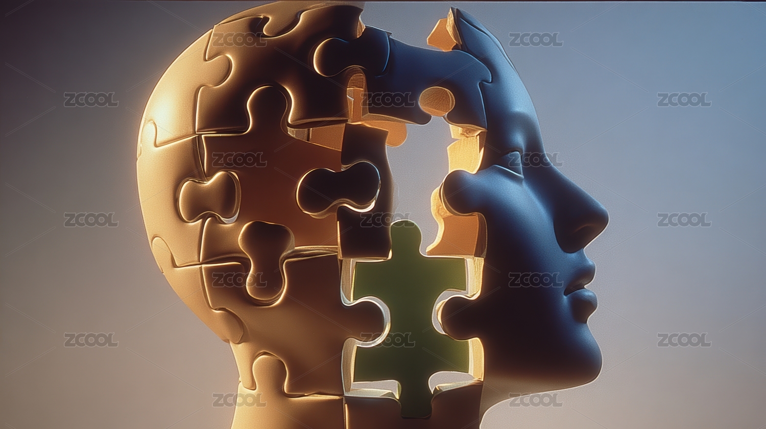 由拼图碎片组成头部轮廓