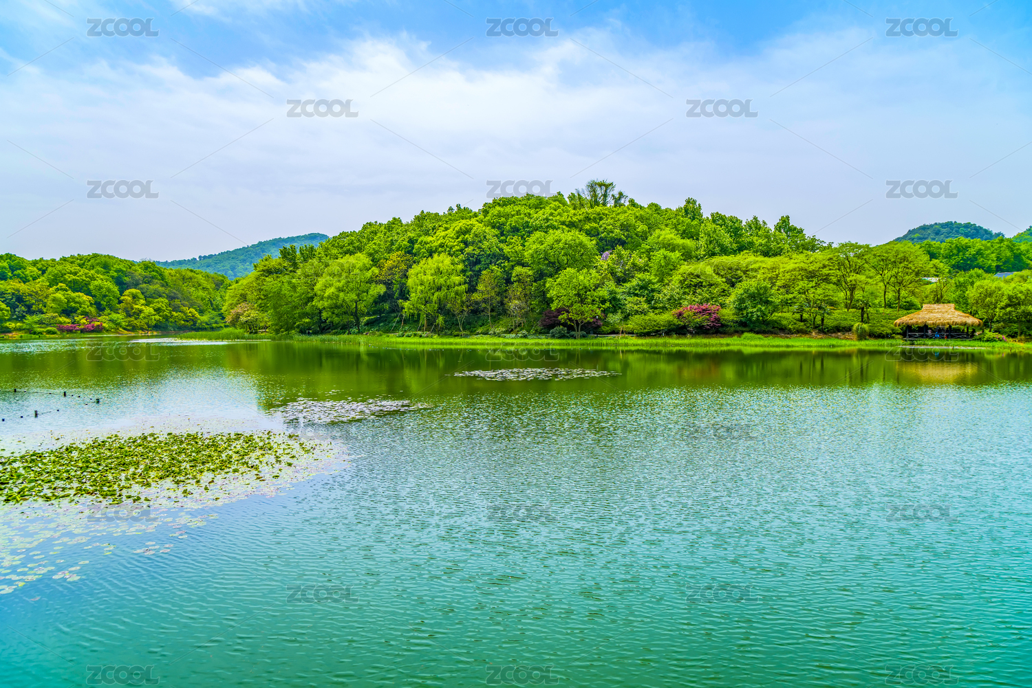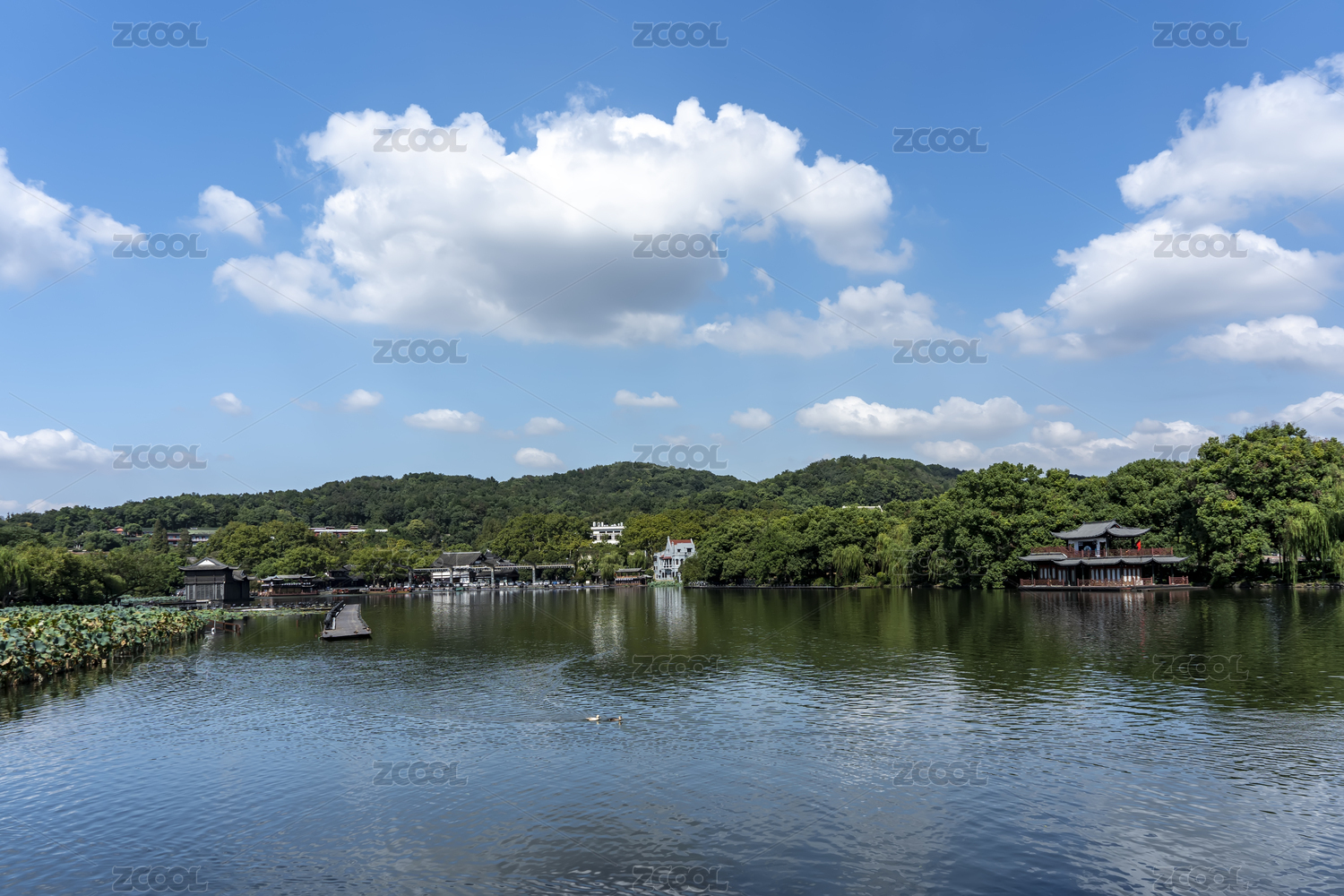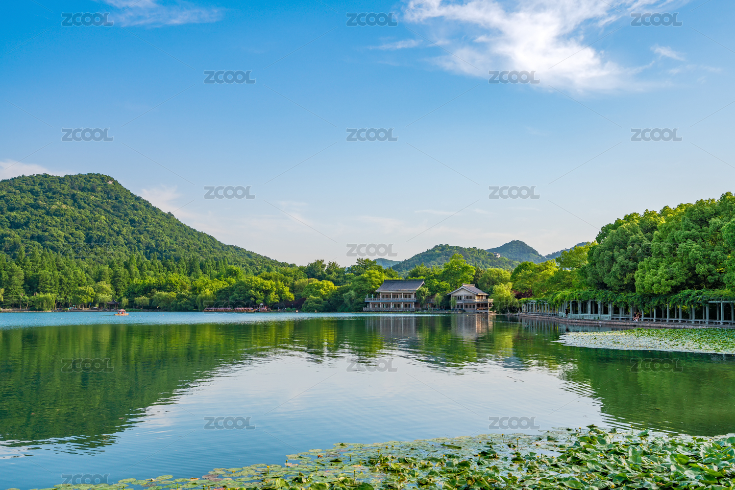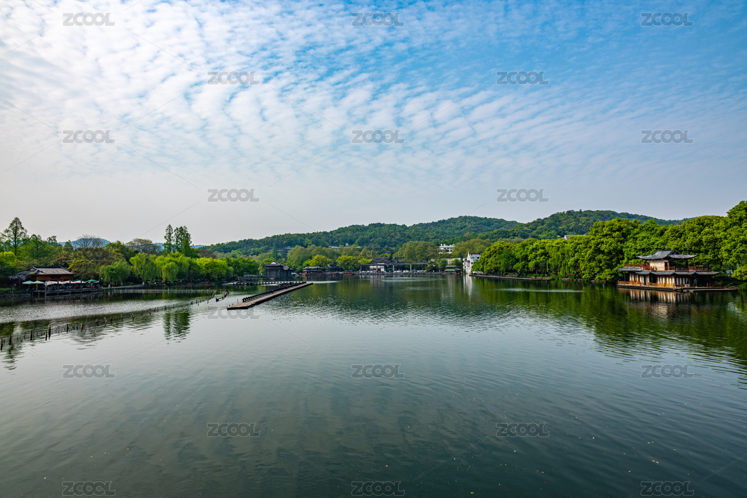 浙江杭州西湖风景区春天白堤苏堤湖畔春色