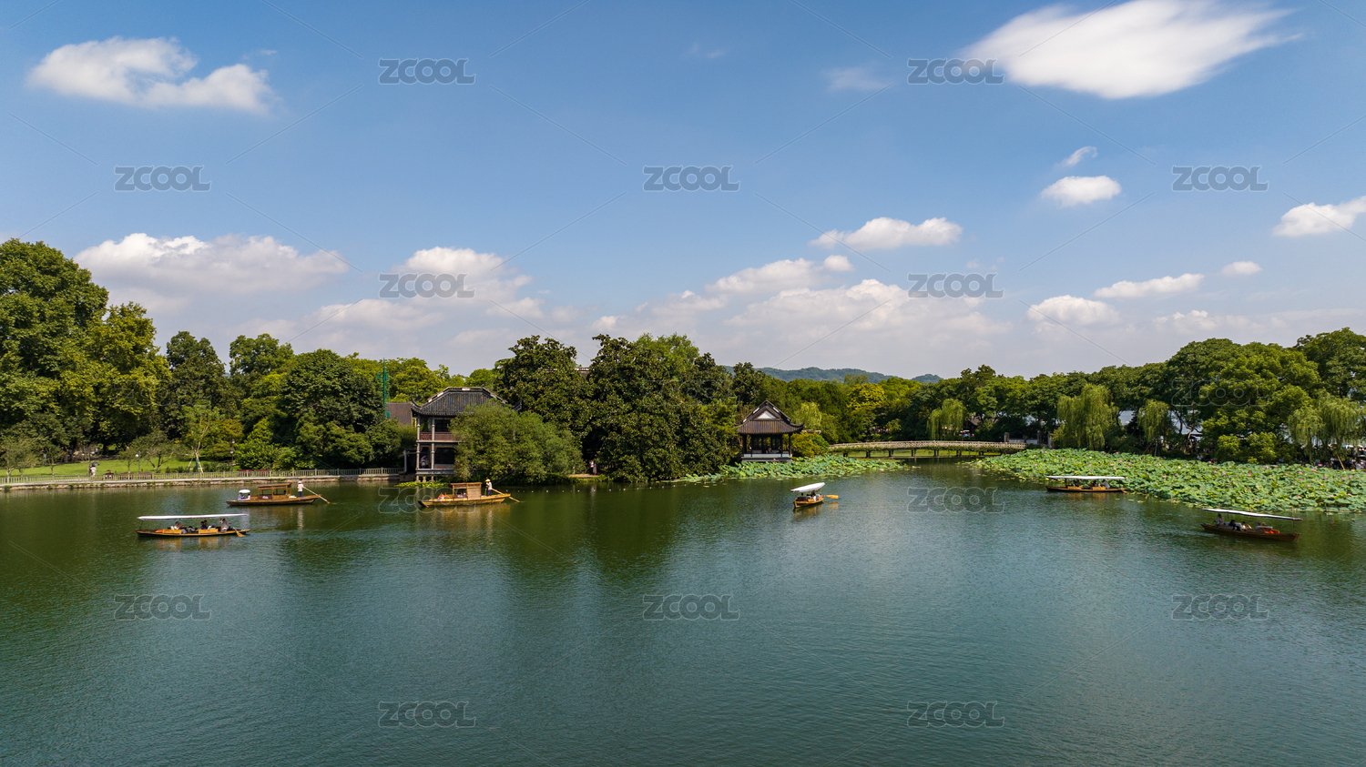 航拍杭州西湖曲院风荷玉带晴虹 玉带桥