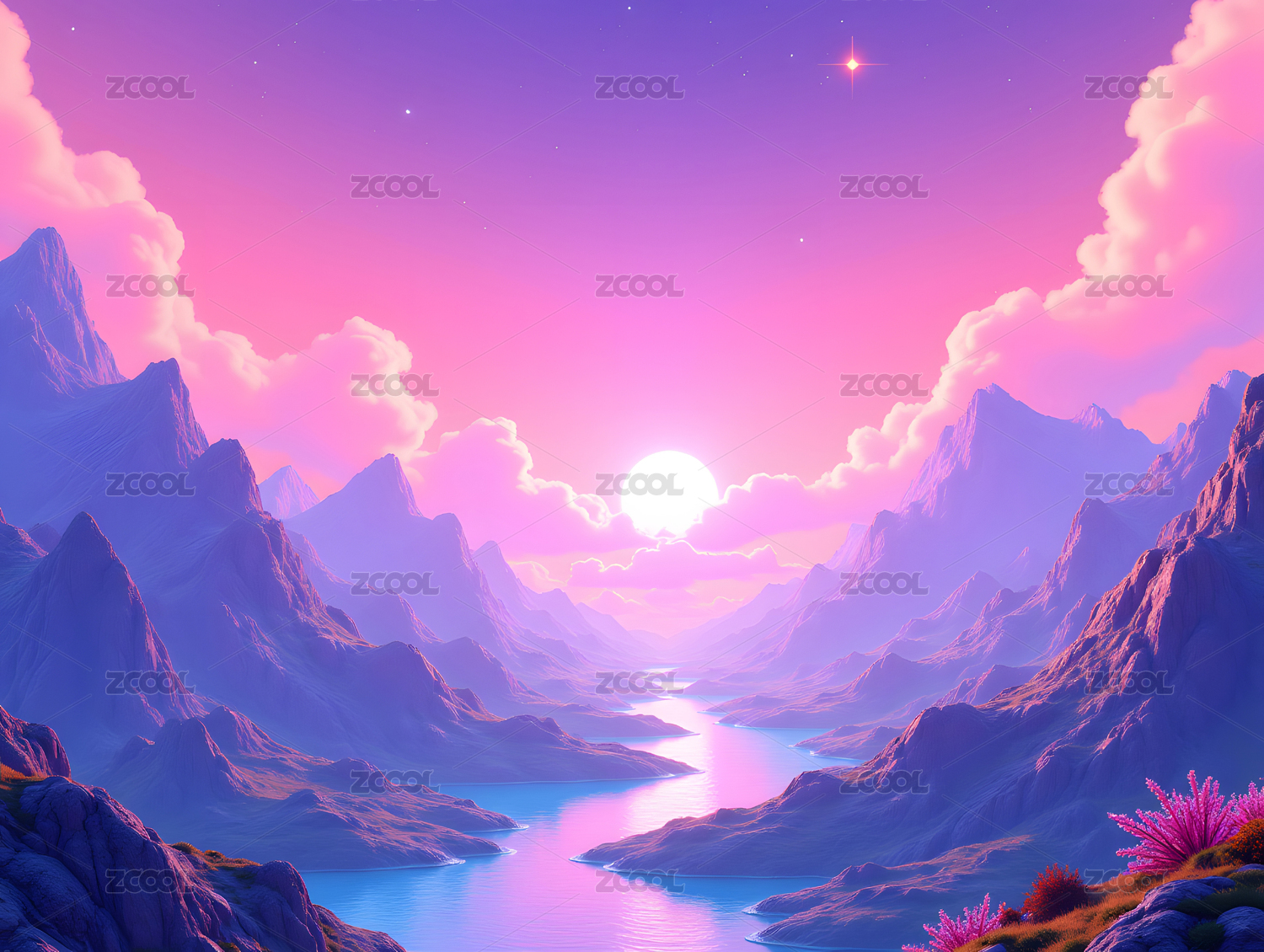 日出,云彩,山脉,插画,风景,自然,户外,清晨,太阳,蓝色