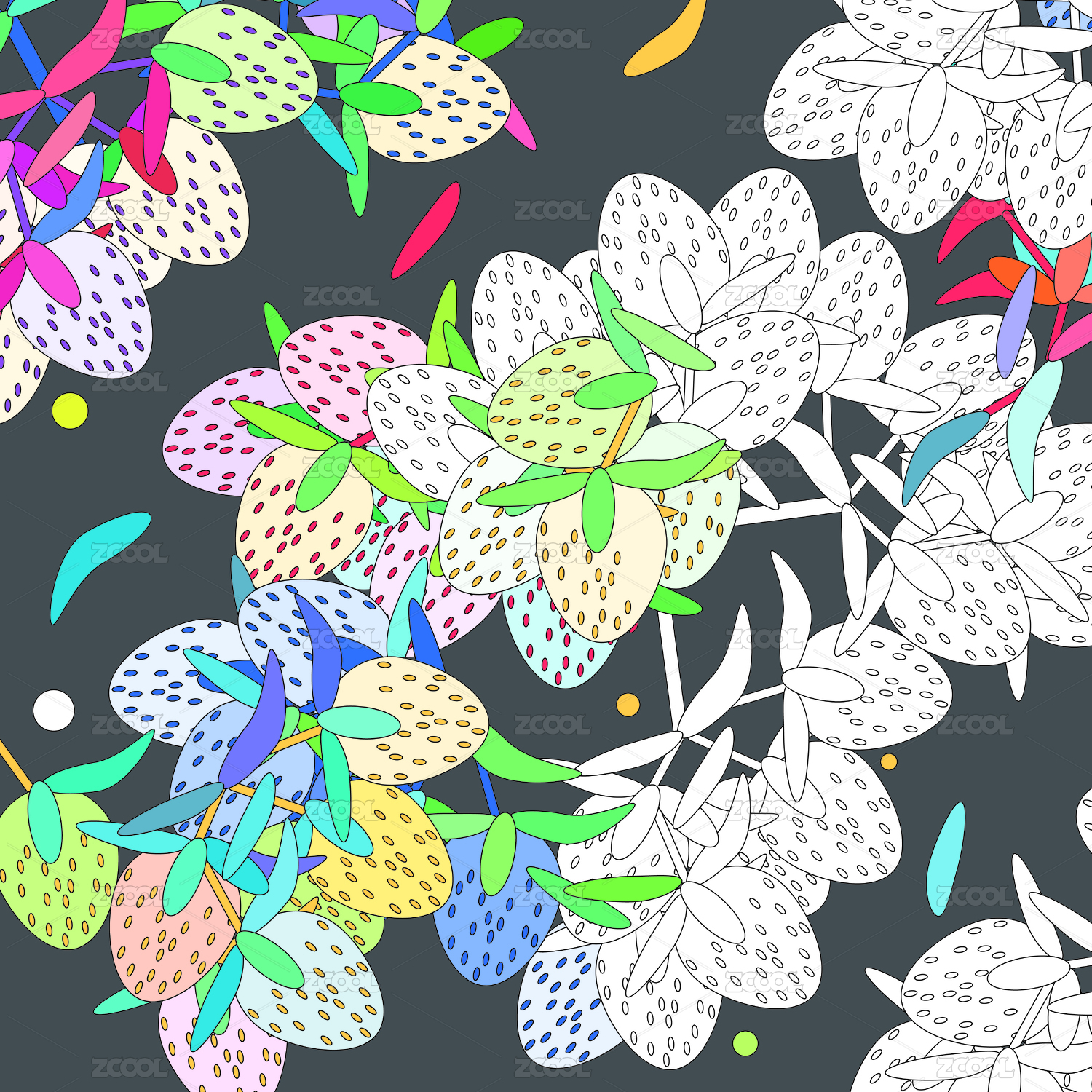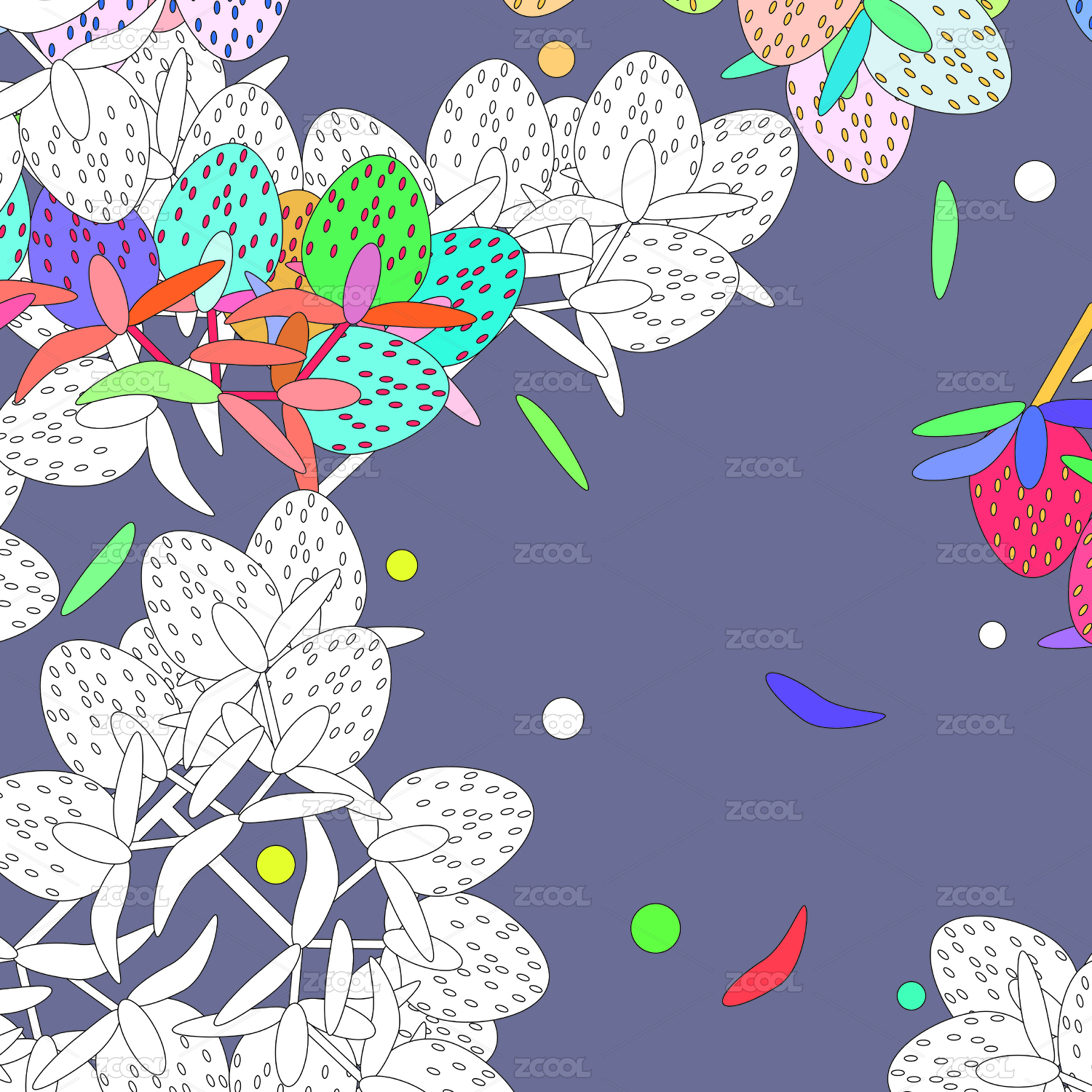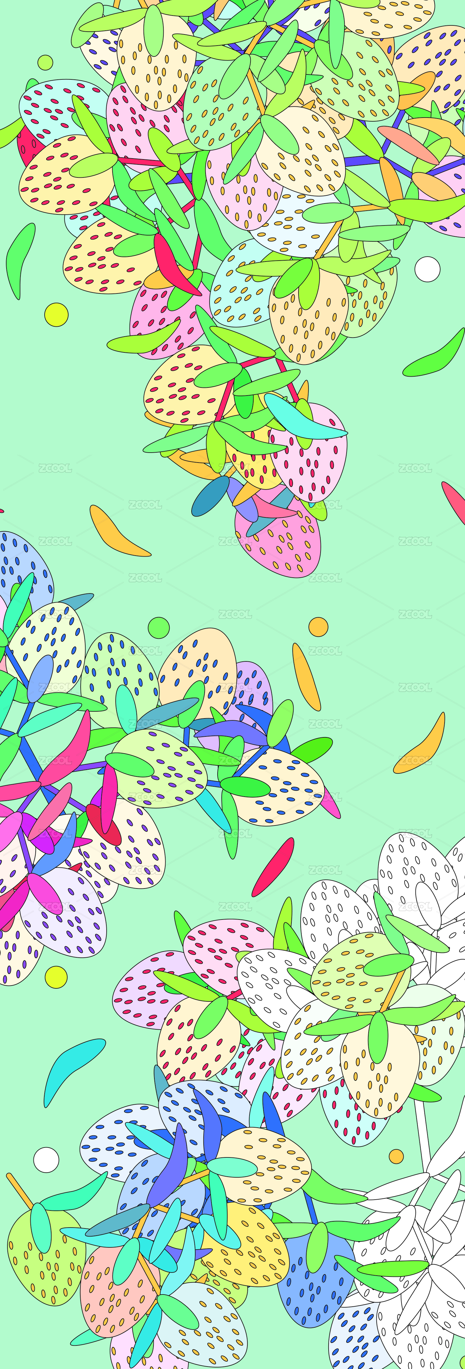 草莓,荧光,梦幻,意境,草莓藤,马卡龙色,莫兰迪色,叶子