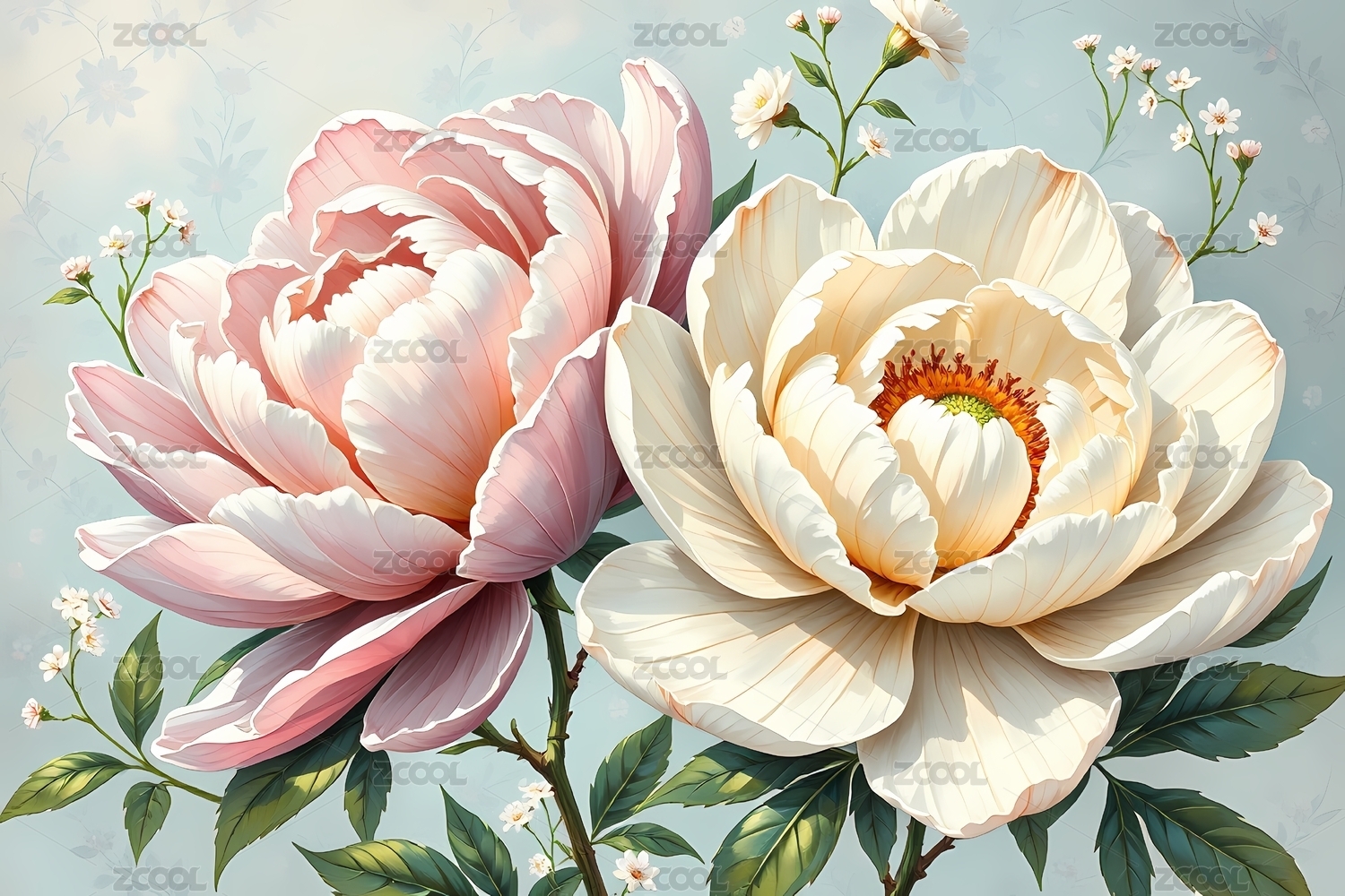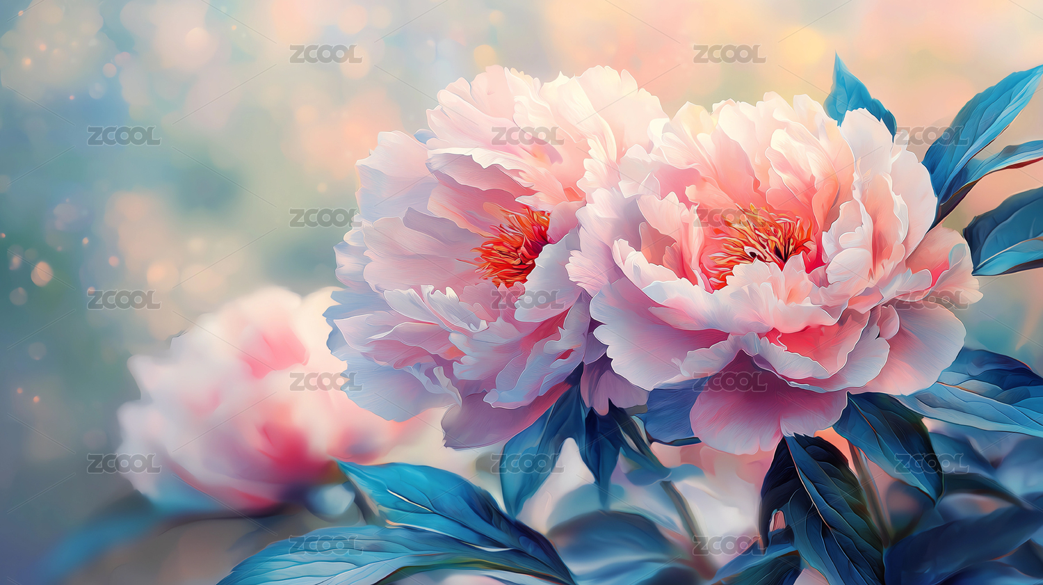 牡丹花卉清新商业壁纸场景