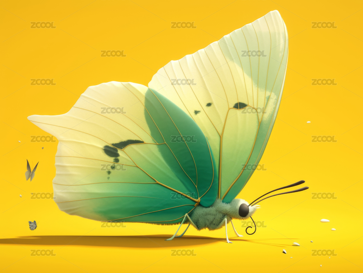 绿色蝴蝶在黄色背景上