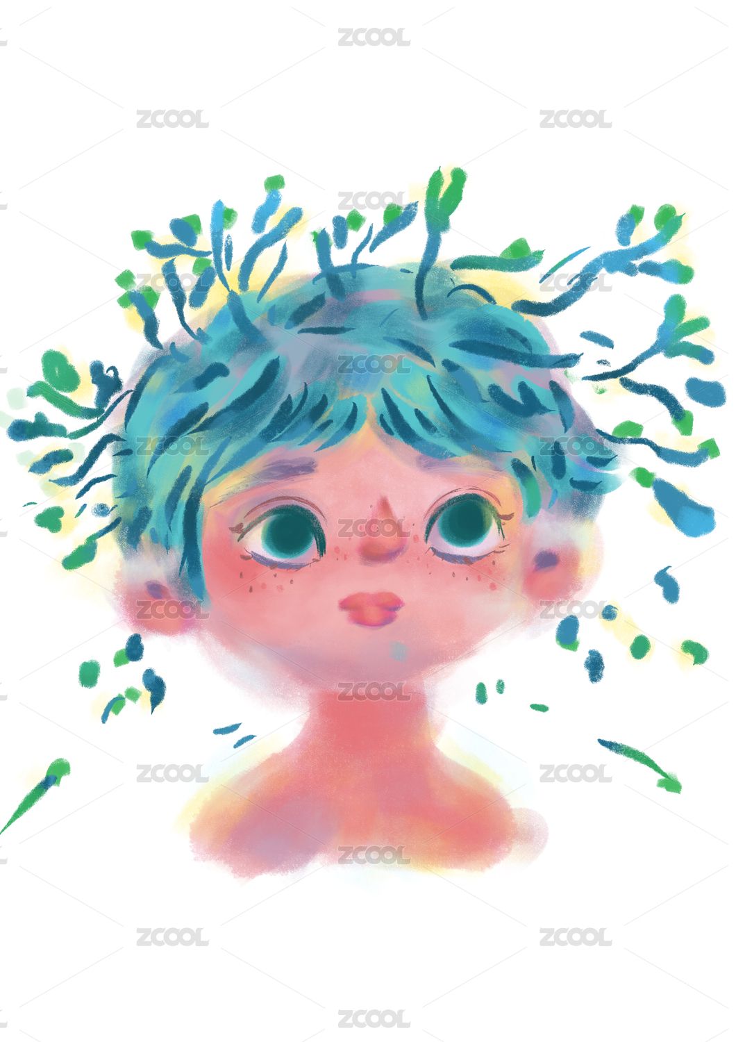 绿发孩童仰望天空