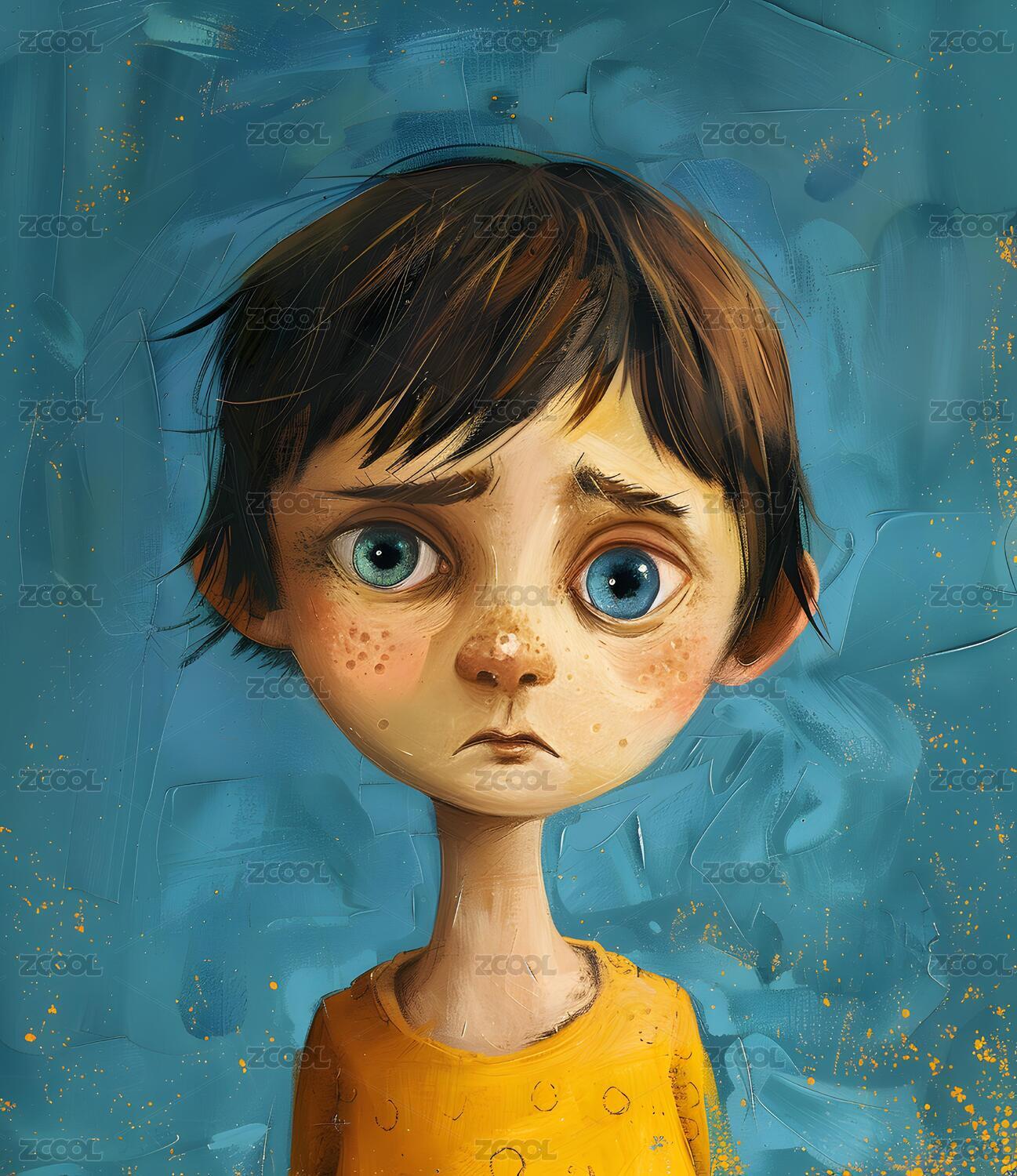 悲伤的卡通男孩插画