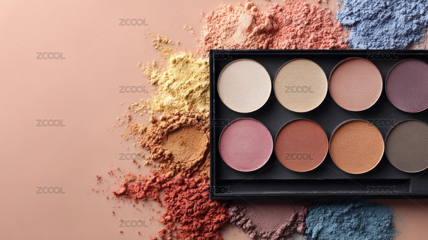 彩妆盘与散落的眼影粉末
