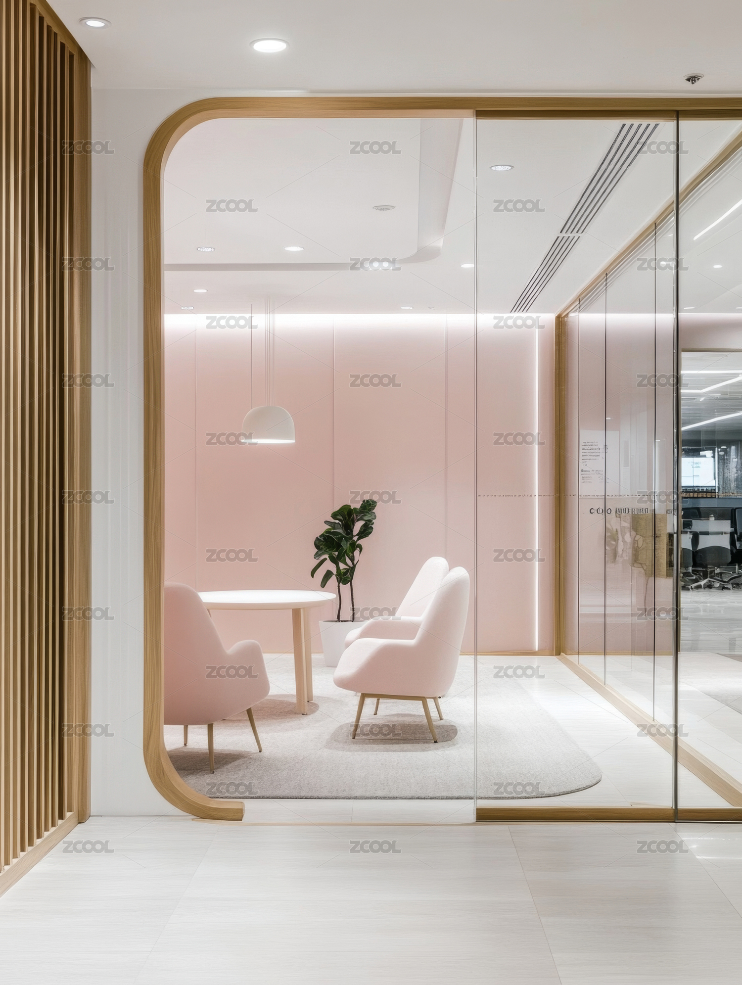 办公室,粉色,简约,现代,室内,设计,植物,楼梯,灯光,工作区