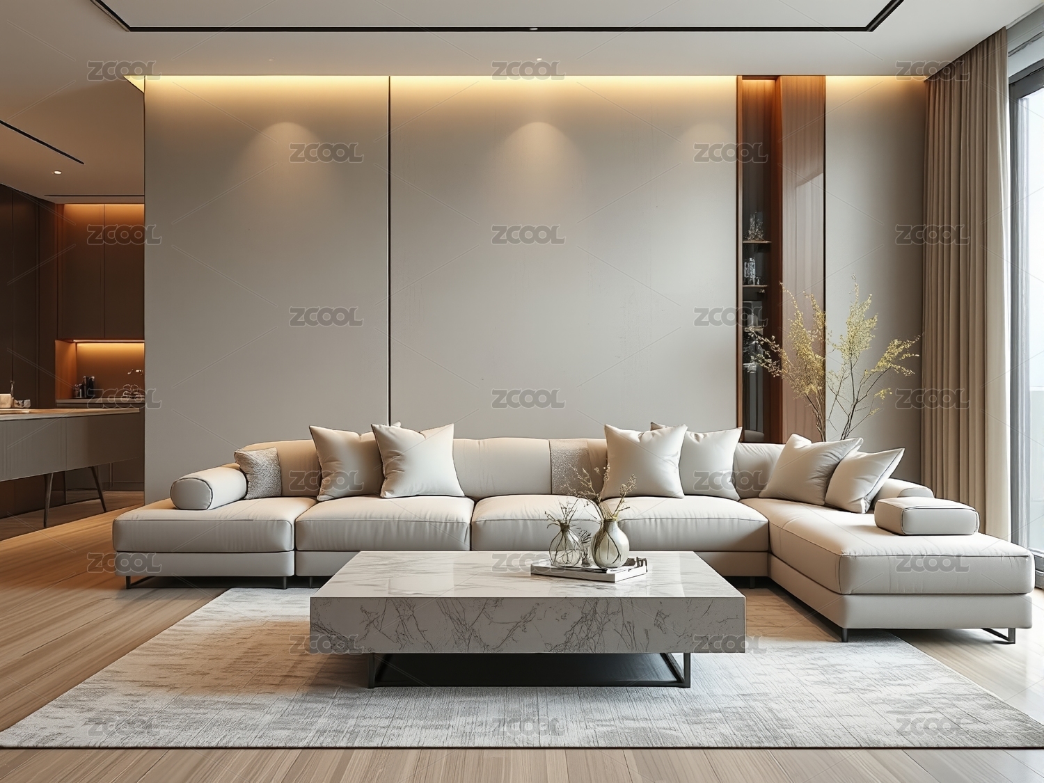 客厅,现代,简约,沙发,茶几,抱枕,装饰画,地毯,灯光