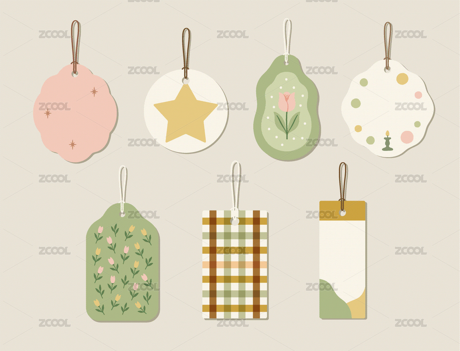 手绘风莫兰迪色系装饰吊牌插画