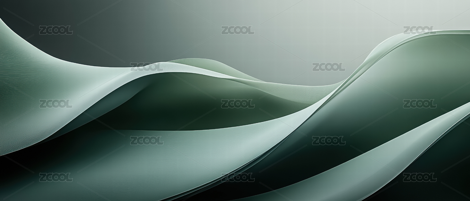 绿色抽象曲线构图光影交错呈现丝滑质感