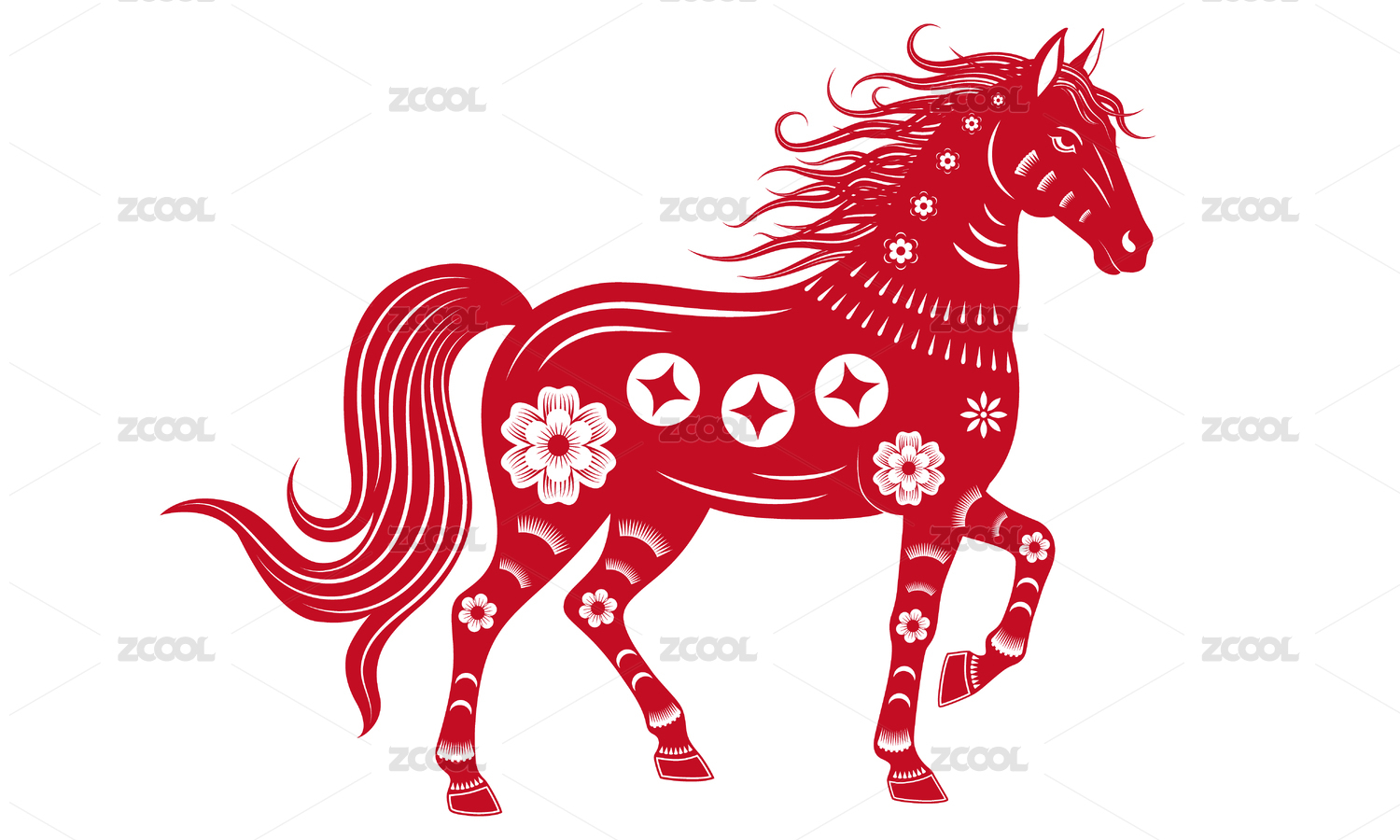 红色剪纸骏马踏云图案